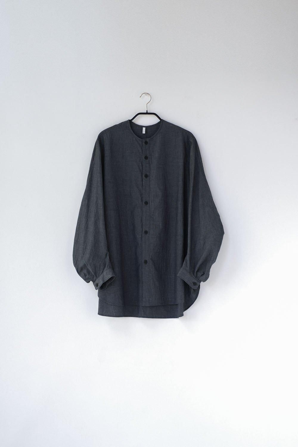 - 40/1オーガニックコットン・強撚ウェザー ノーカラー カーブスリーブシャツ/Chamgrey/FIRMUM