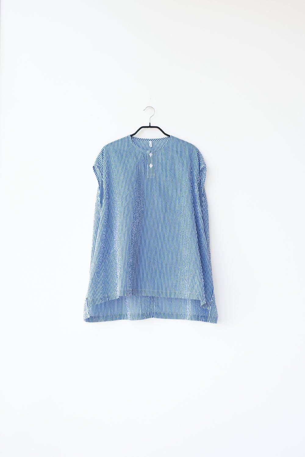 - 1/80スターチコットン・ストライプローン ヘンリーネックベスト/off white × blue[size XS]/FIRMUM