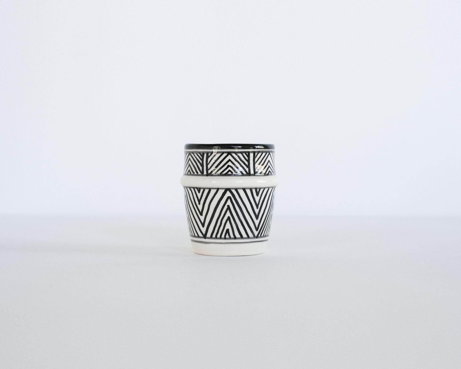 - pottery cup M/Black pattern with black rim /LIGHT YEARS