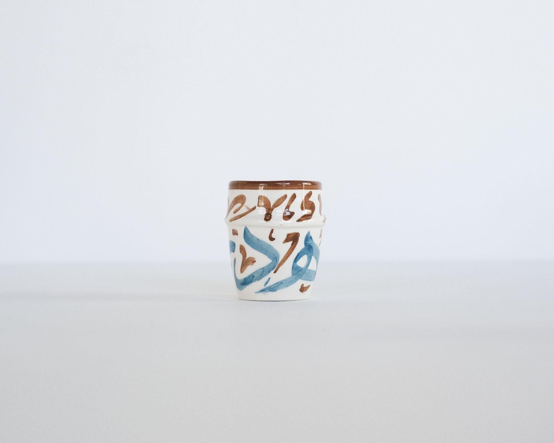- pottery cup M/Brown pattern with brown rim /LIGHT YEARS