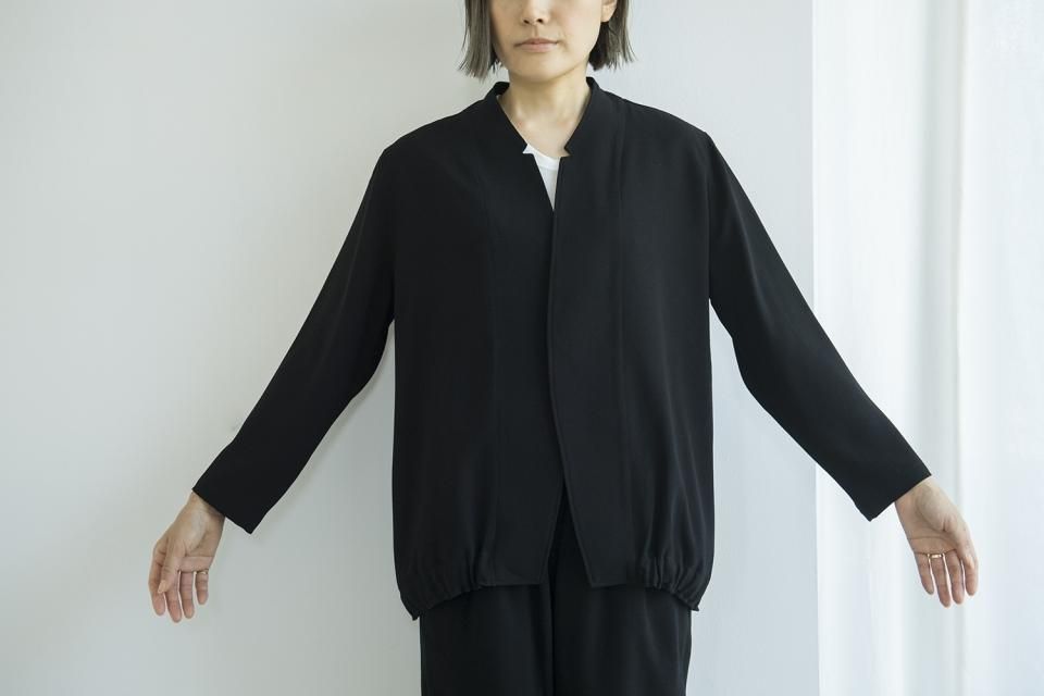 【商品名】アセテート&ポリエステル ライトクレープ ダブルクロス ジャケット/black