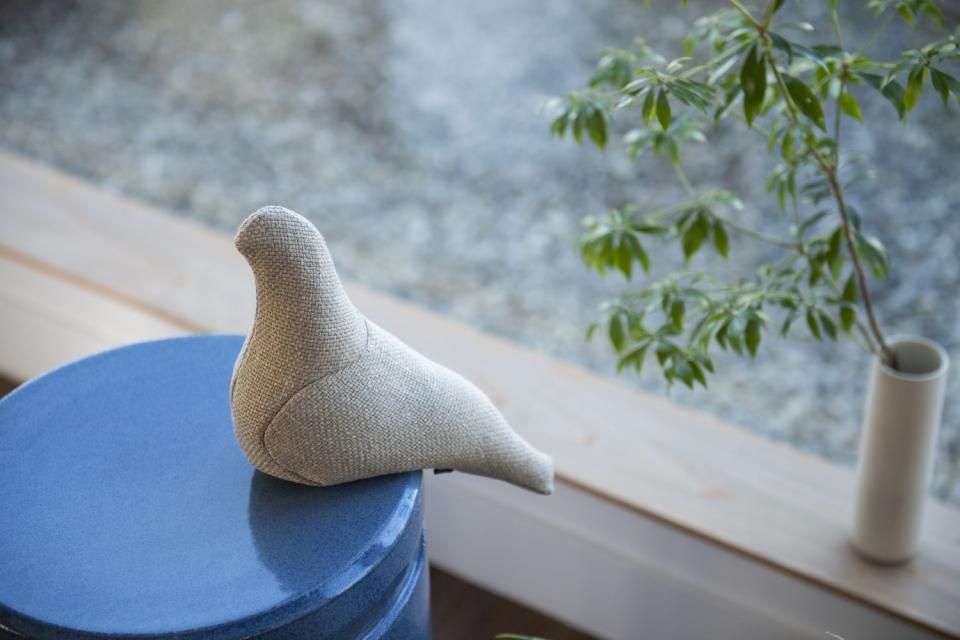実際に博物館では、建物全体に200羽の鳩がインスタレーション形式で展示されています。第一次世界大戦中、同博物館の建物はドイツ軍に占拠され、スパイ活動を行うための伝書鳩を収容する施設として使用されていたという過去の痛ましい記憶からインスピレーションを受け、この作品を製作しています。この鳩は、ベルギー産FLAX(亜麻)100%の生地を使ってハンドメイドで作られており、中材にも麻の種を使用しており、適度な重量感があり、肌触りも良いものとなっています。それぞれの鳩の尾のあたりに小さなメモが取り付けられているので、実際にメッセンジャーとして使用することもできます。
