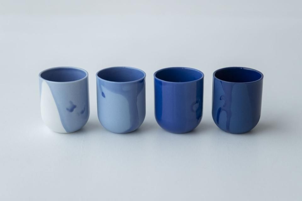 スリップキャスト(鋳込み成形)という手法で作られた「SUM」は、製造プロセスのディテールや色、仕上げのあらゆる工程が、最終プロダクトと価格に直接影響する磁器のコレクションです。外側の釉薬がランダムに施されたもので、一点一点釉薬の表情が異なります。一点一点、De Intu?tiefabriekのアトリエにてデザイナー自らの手によって作られています。