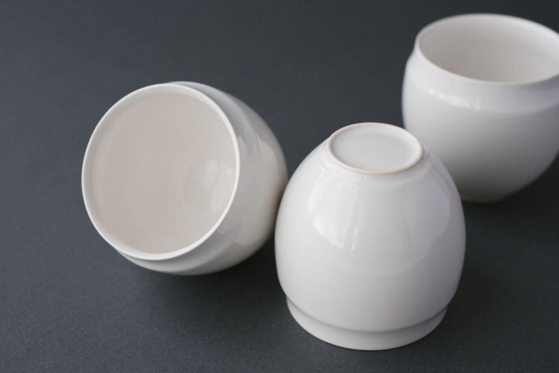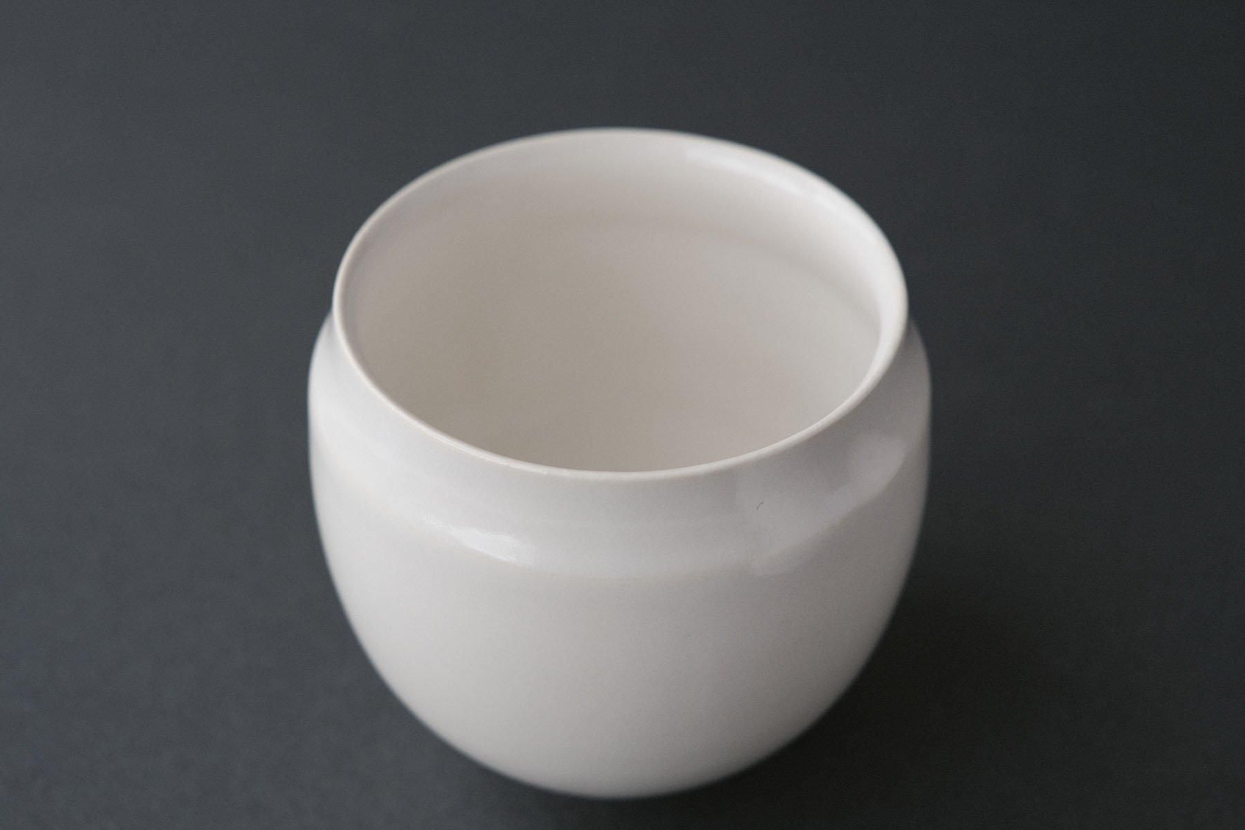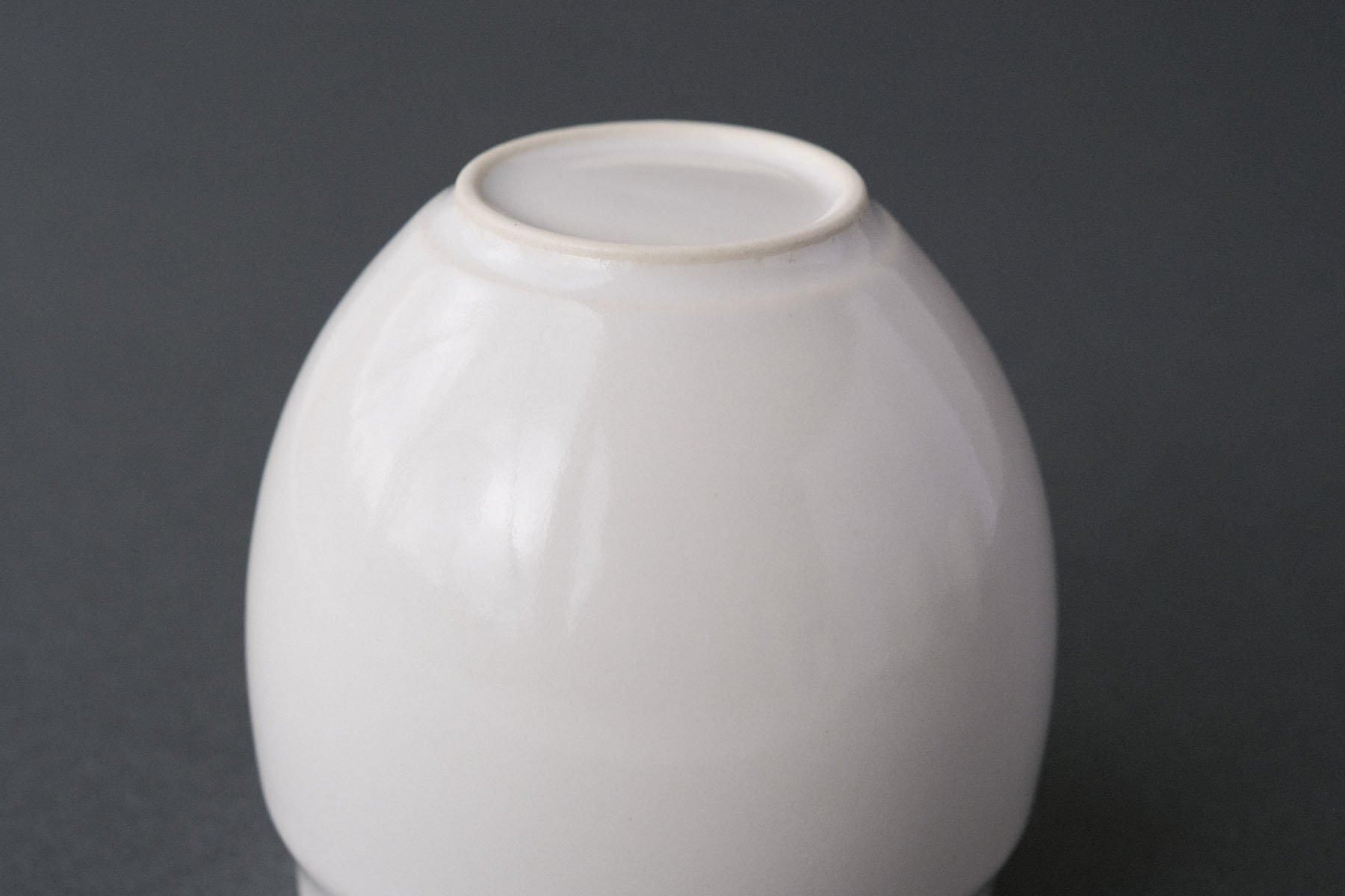 まるで琺瑯のようなツヤ感があり、単なる白ではなく乳白色の器です。