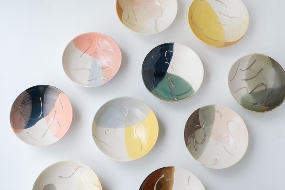 鮮やかな色使いとその中で漂う銀彩が印象的な浅鉢です。色使いや銀彩の動きによって浮かび上がる情景にはひとつひとつ違いがあり、不思議と自分の感情や思い出との重なりを感じられます。
