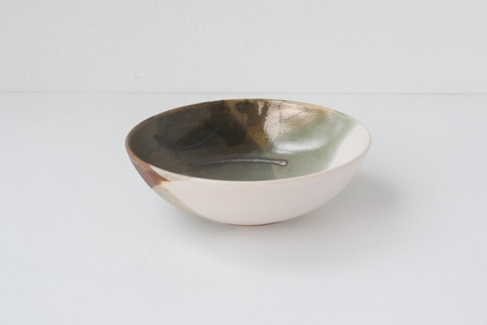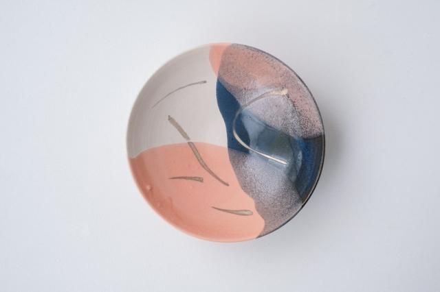 鮮やかな色使いとその中で漂う銀彩が印象的な浅鉢です。色使いや銀彩の動きによって浮かび上がる情景にはひとつひとつ違いがあり、不思議と自分の感情や思い出との重なりを感じられます。