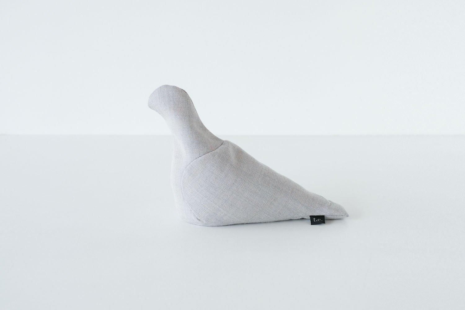 実際に博物館では、建物全体に200羽の鳩がインスタレーション形式で展示されています。第一次世界大戦中、同博物館の建物はドイツ軍に占拠され、スパイ活動を行うための伝書鳩を収容する施設として使用されていたという過去の痛ましい記憶からインスピレーションを受け、この作品を製作しています。この鳩は、ベルギー産FLAX(亜麻)100%の生地を使ってハンドメイドで作られており、中材にも麻の種を使用しており、適度な重量感があり、肌触りも良いものとなっています。また別途でメモ紙が付属しています。