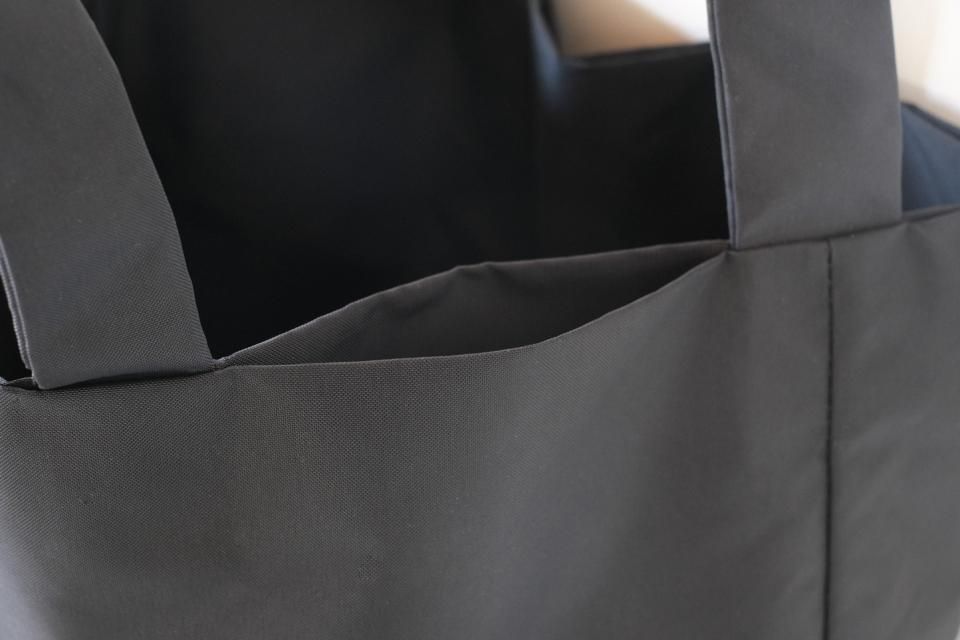 高品質の高密度ナイロンを使用したショルダートートバッグ。耐久性と撥水性に優れた高密度なナイロン地で上品な雰囲気です。両サイドに6ヶ所ポケットが付いているため、財布や携帯、折り畳み傘などさまざまなものを小分けに収納できます。ハンドルを持つだけでなく肩掛けも可能なため荷物の多い出張時やお出かけ時にもスタイリッシュさを保ちながらも洗練された印象で幅広いシーンで使うことができます。