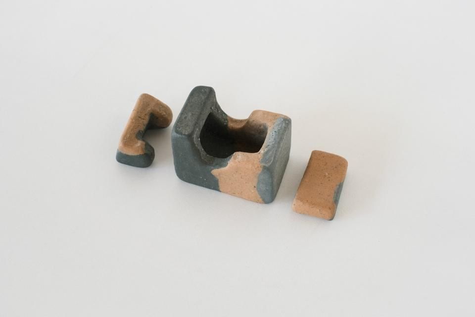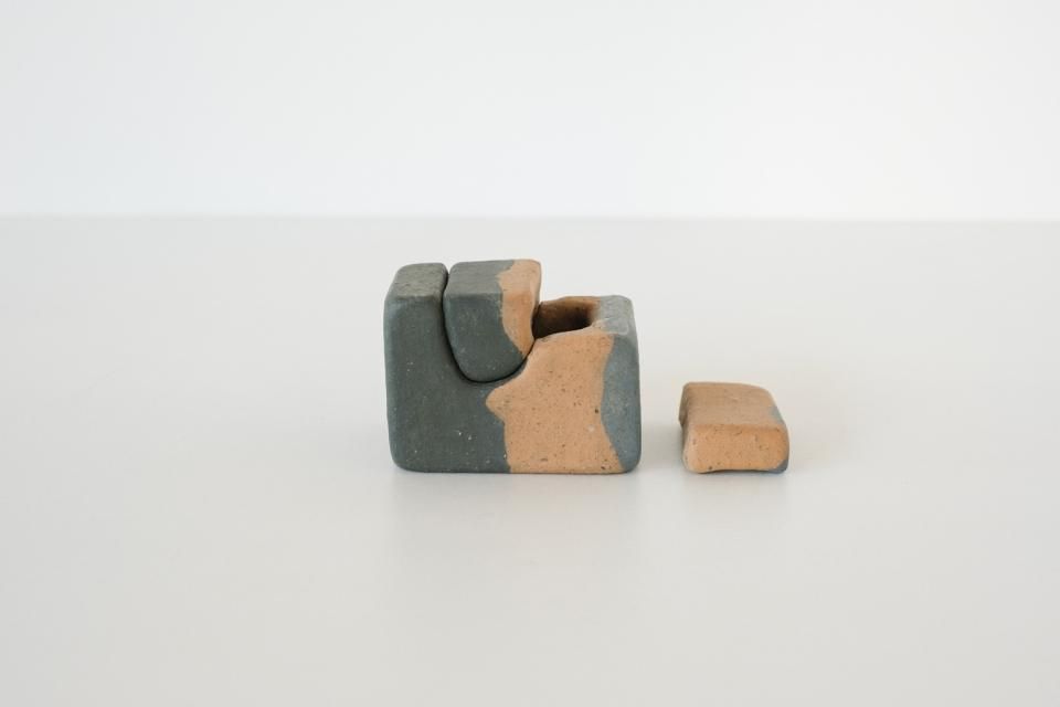 愛知県にて作陶している成田周平さんのフタモノ。パズルのような見た目ですが、ちょっとした収納具や受け皿として、中に物を収めることもできます。色は釉薬を塗るのではなく土自体に顔料を混ぜ込み着色を行っているので、ポップなカラーリングの色の境目部分は土どうしの境界線でもあります。また、表面の目止めとして蜜蝋を染み込ませているので、水洗いでのお手入れも可能です。手の中で形作られるどこか愛嬌のある形と、独特な表情をお楽しみ下さい。