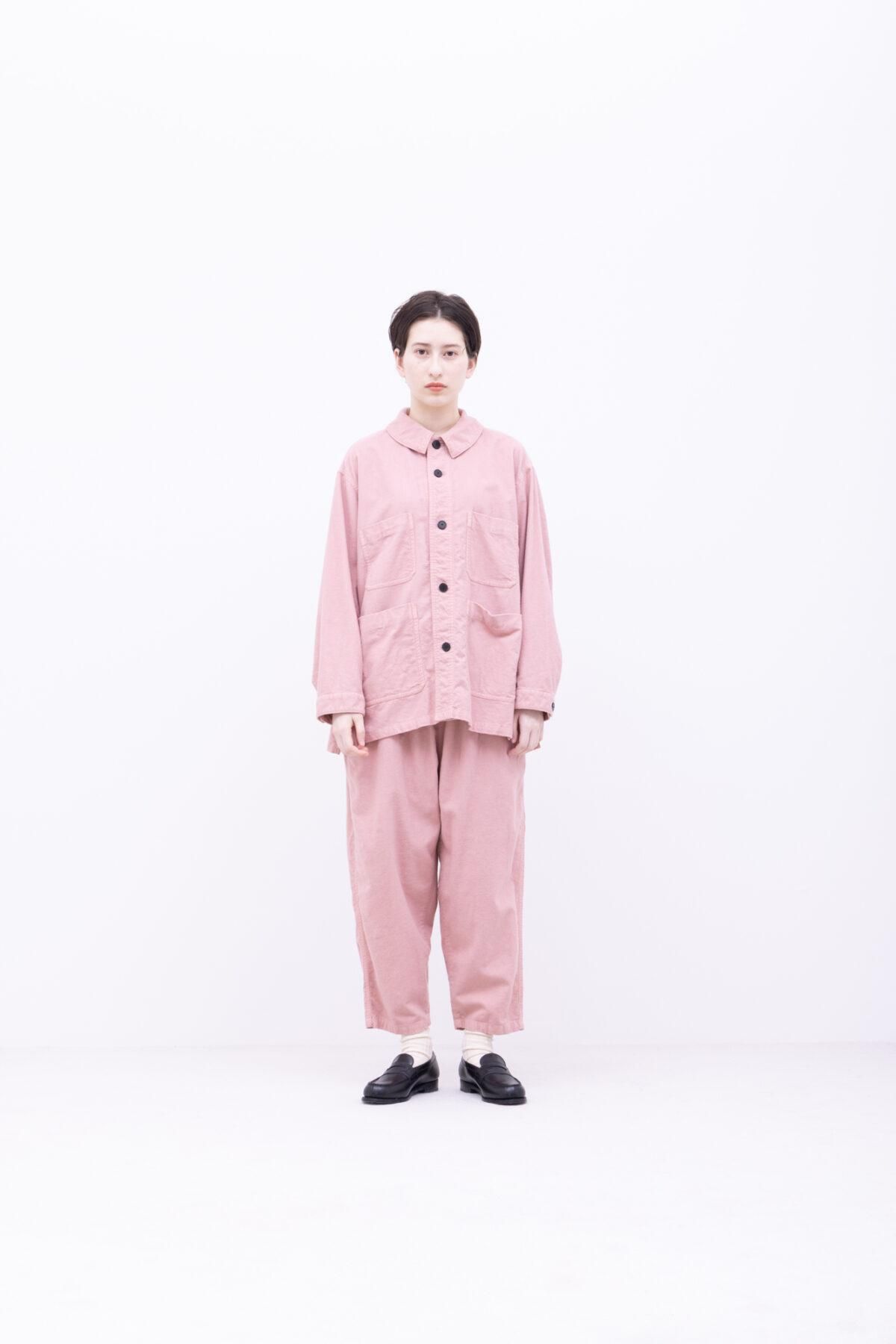 【商品名】フランネル レーヨン・ガーメントダイ テーパードパンツ/smoke pink[size XS]