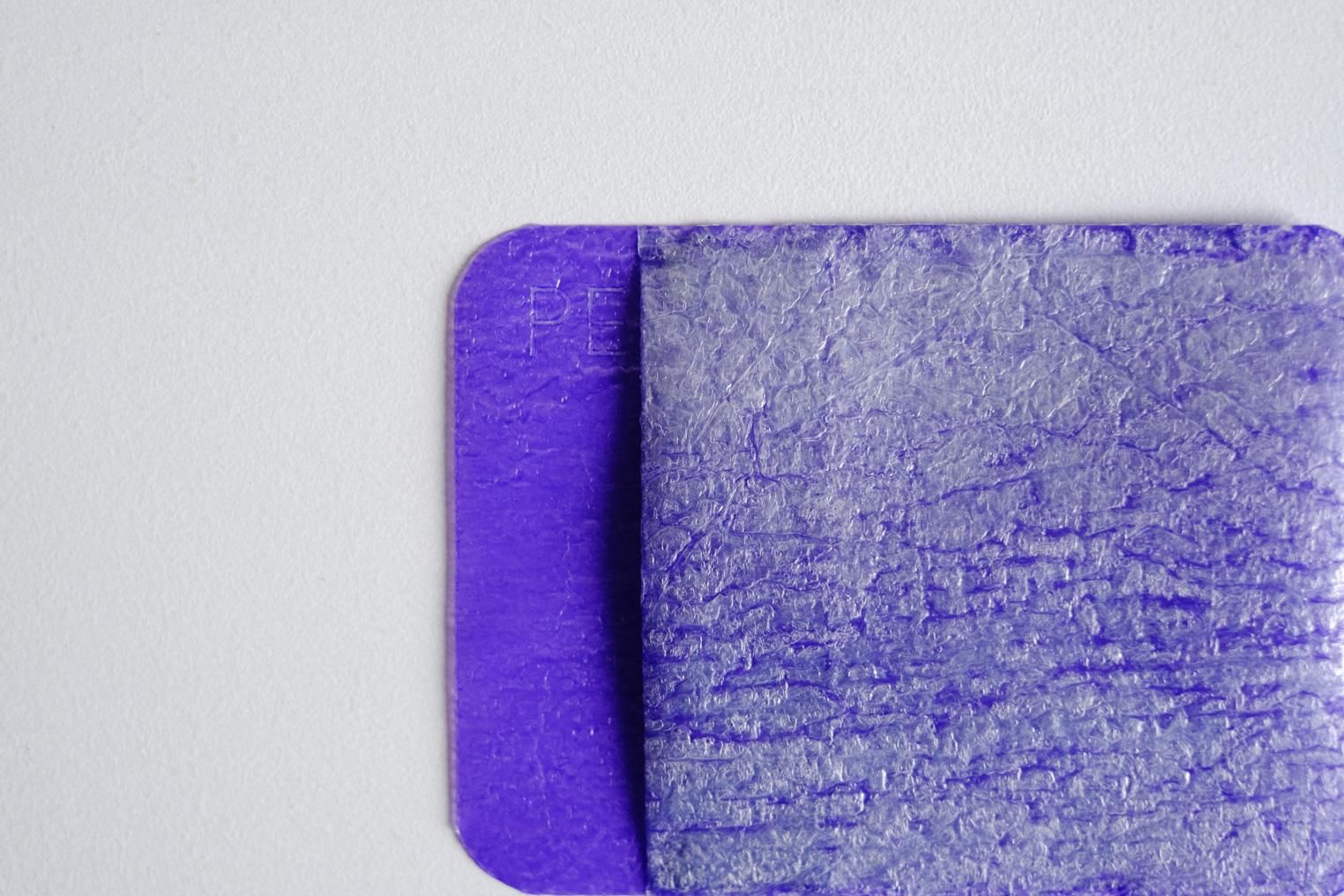 PE(ぺ)は、ゴミ袋などに加工され使用されているポリエチレンフィルムを素材としたプロダクトシリーズです。フィルムを積層し熱溶着することでうまれる自然な縮みやシワ、凹凸などの独特な手触りと表情が特徴。工業的な材料を使いながらも、一点ずつ手仕事で成形されるクラフト的な製作方法が、工業製産品とは異なる質感を作り出しています。独特な質感と表情に加え、プラスチック素材特有の光沢感と発色の良さが魅力です。