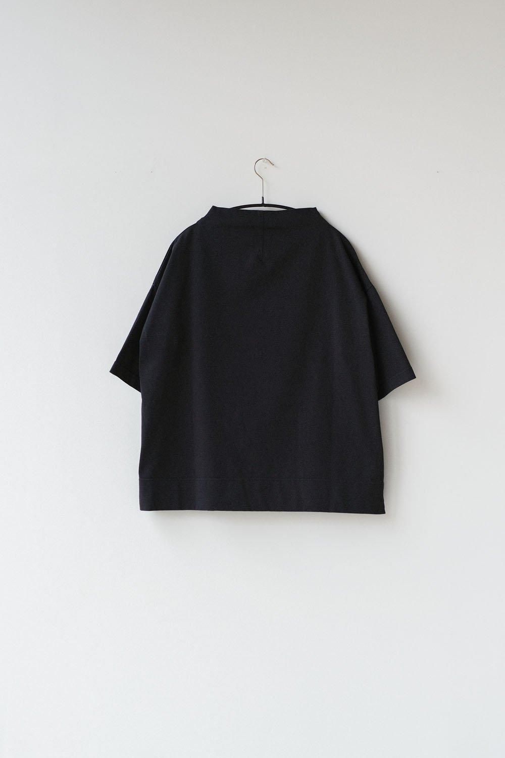 【商品名】微強撚綿天竺 ボトルネックT/black[size XS]