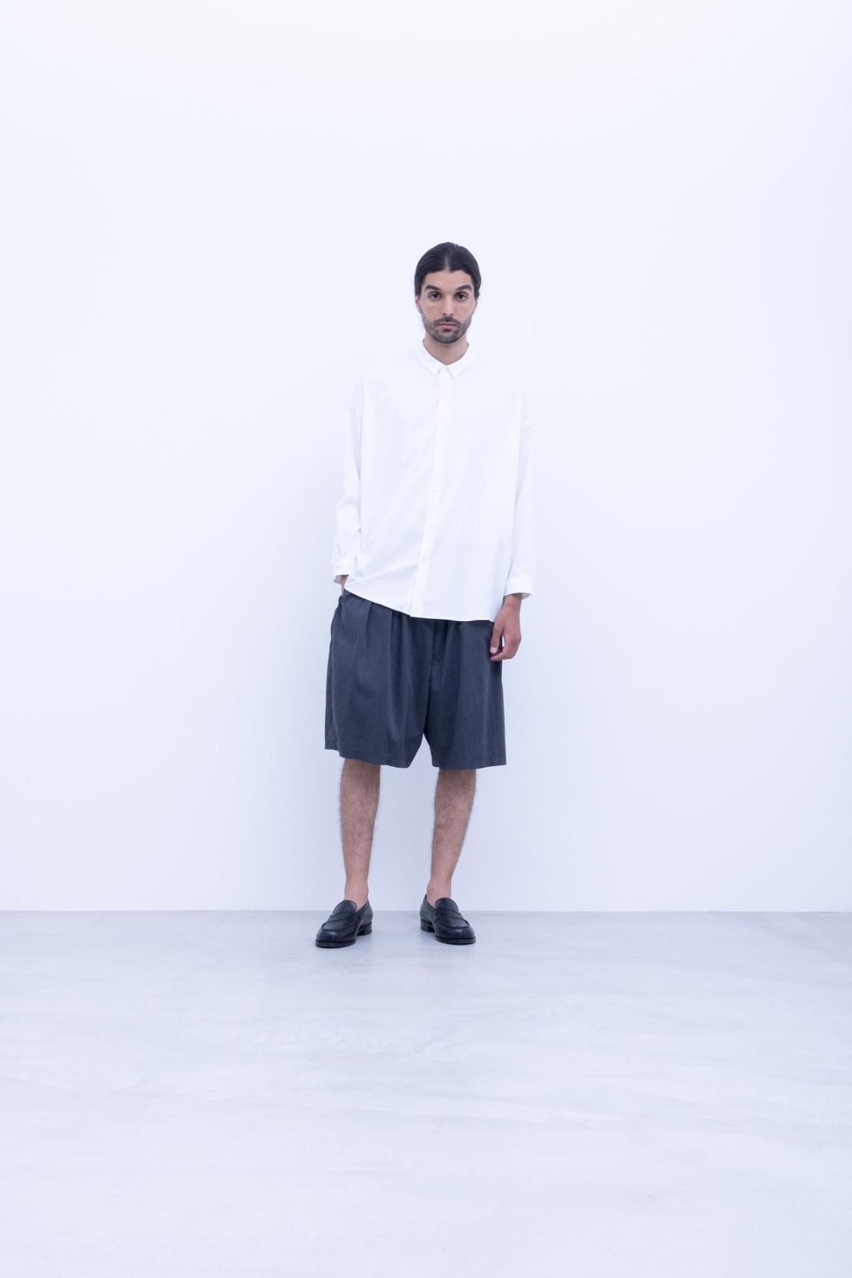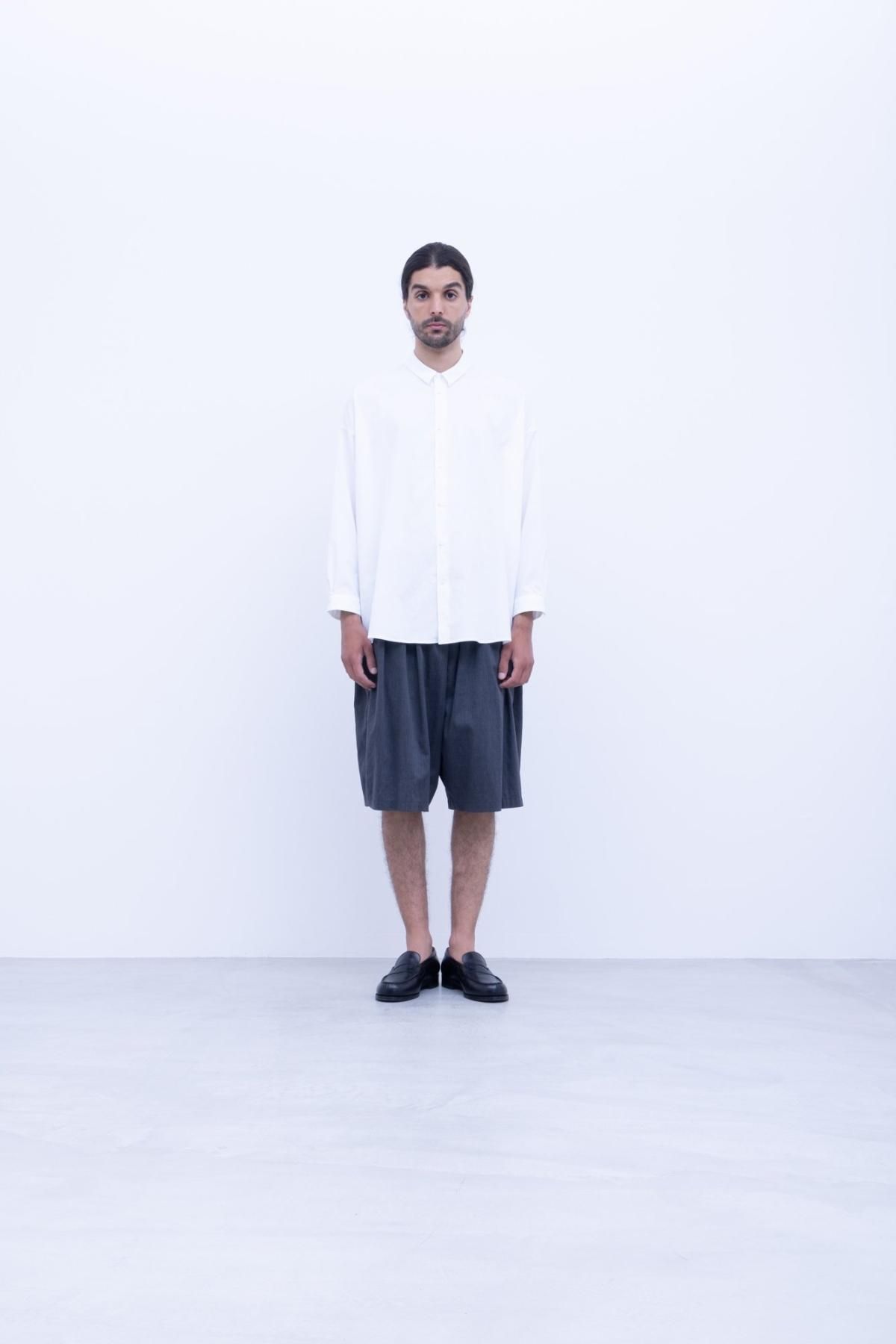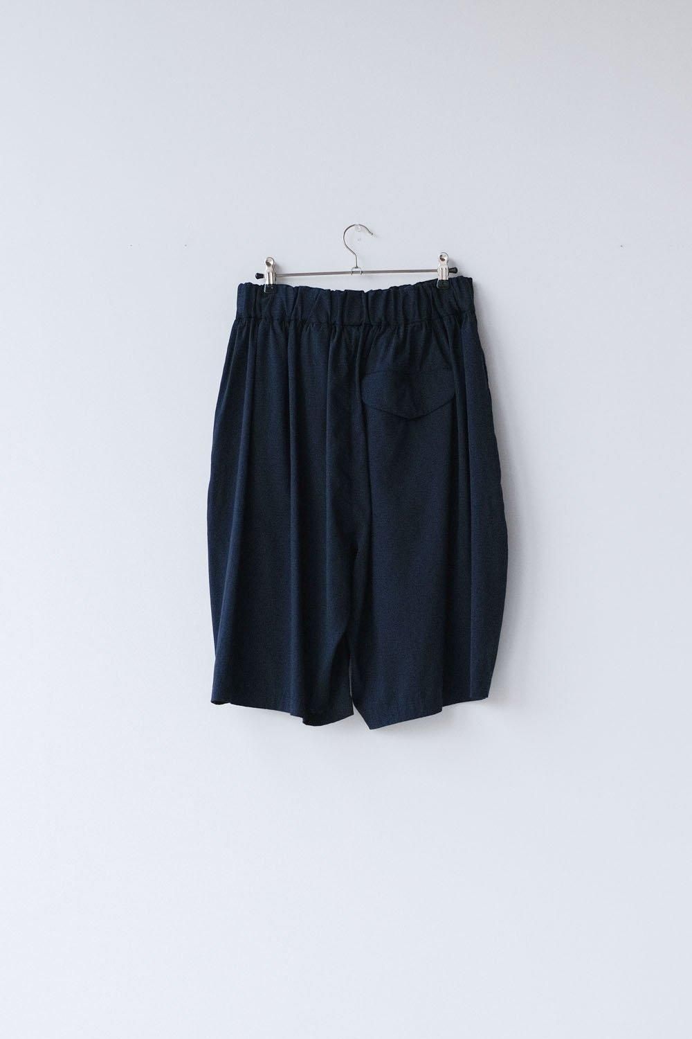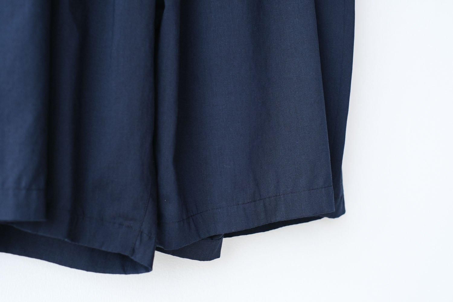 ウエストギャザーのワイドショートパンツは軽やかなこの生地の特徴も相まって、ラフなトップスから綺麗めのシャツなどとも相性が良く自然に着こなしが可能です。