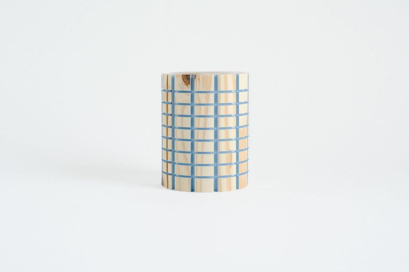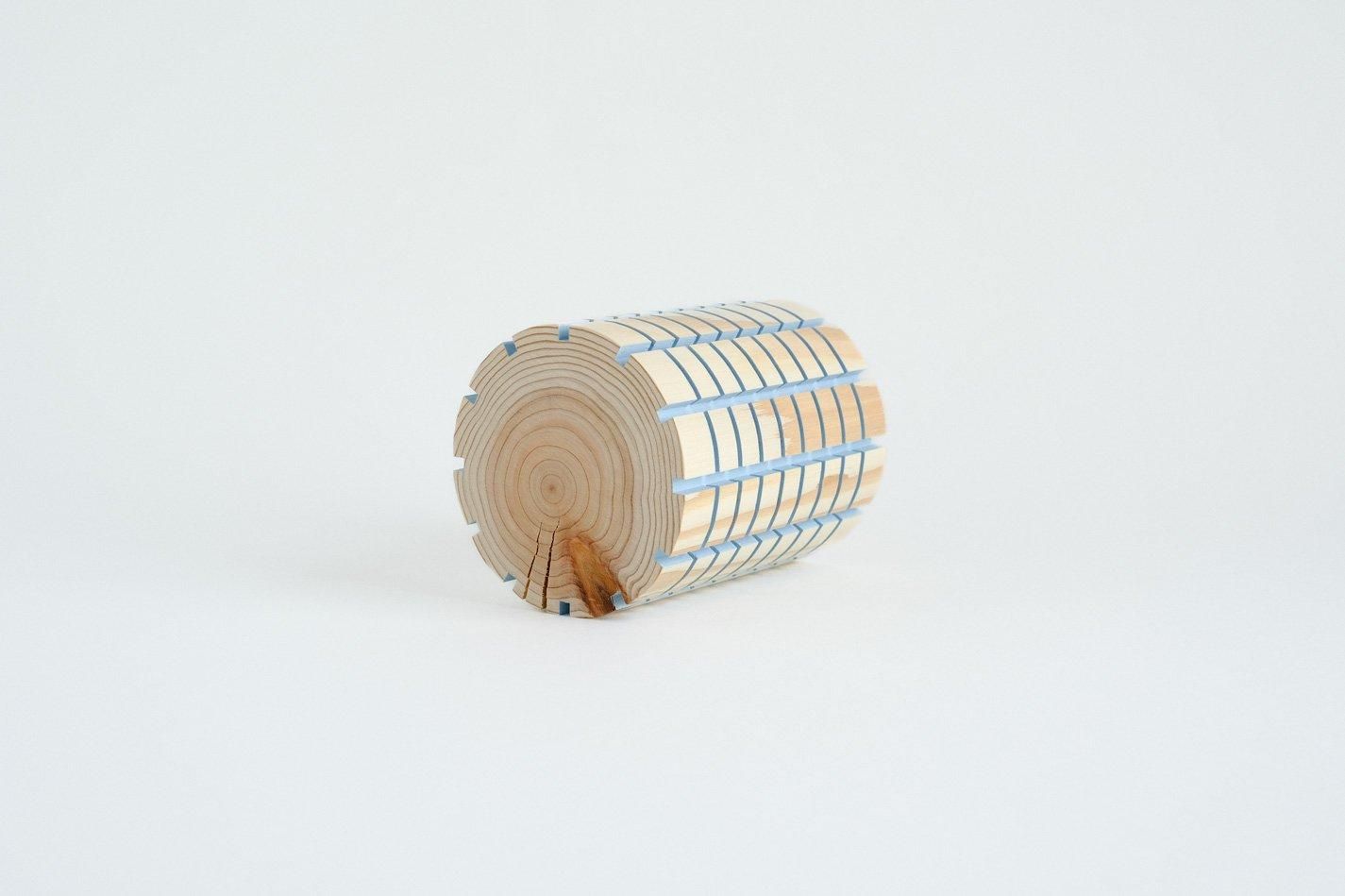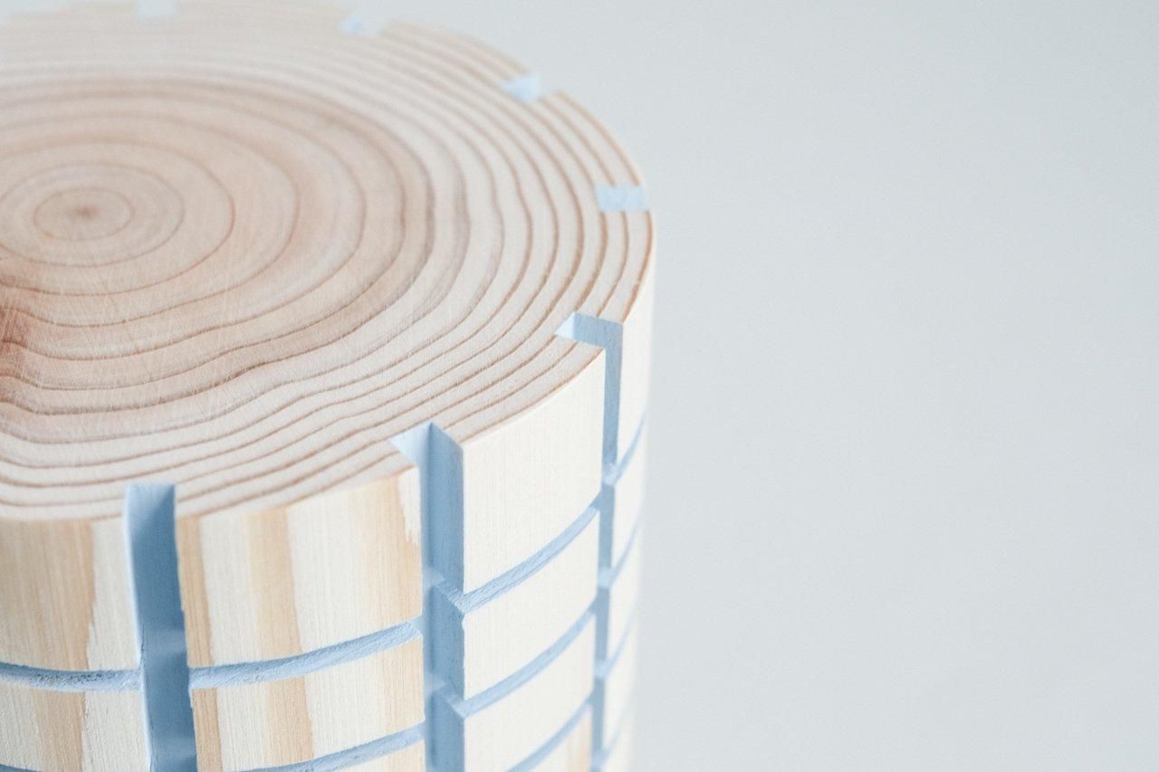 建材などとして使われる針葉樹の角材にグリッド上にノコ目を入れたオブジェ。