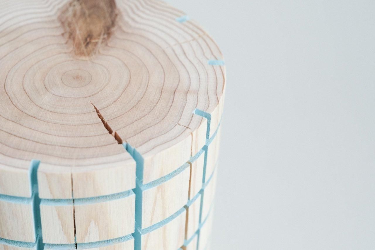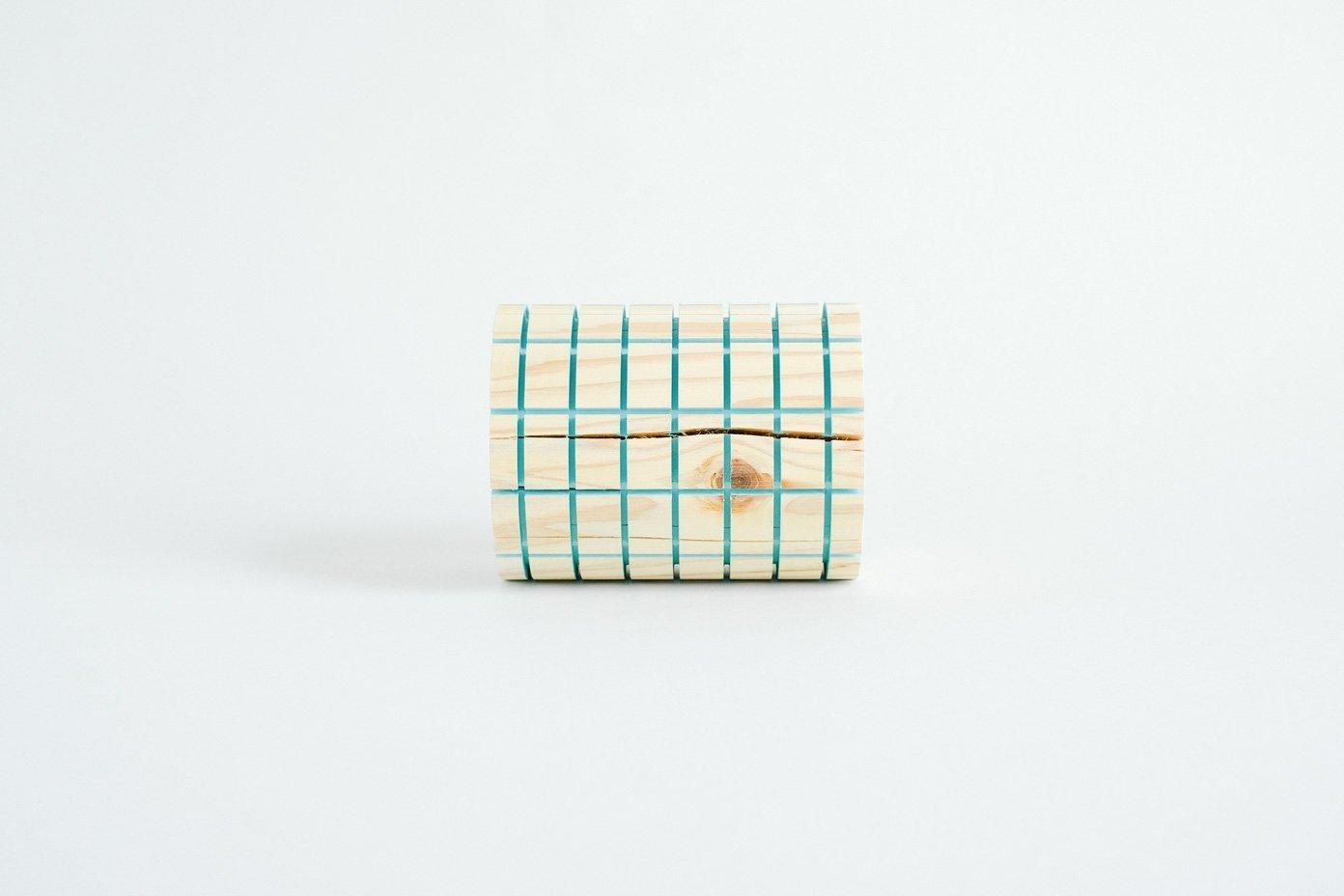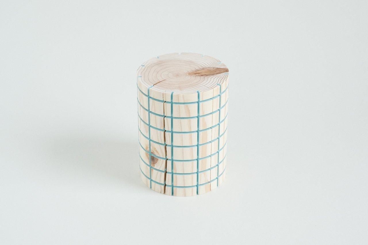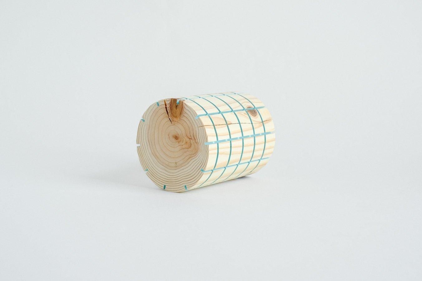 建材などとして使われる針葉樹の角材にグリッド上にノコ目を入れたオブジェ。