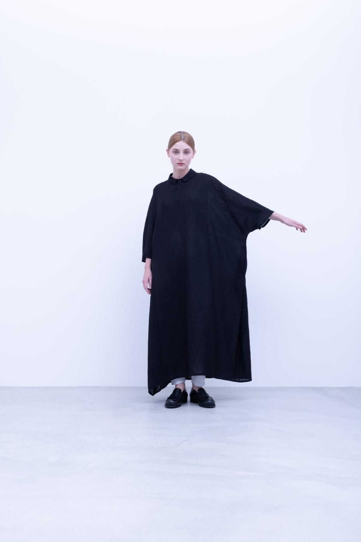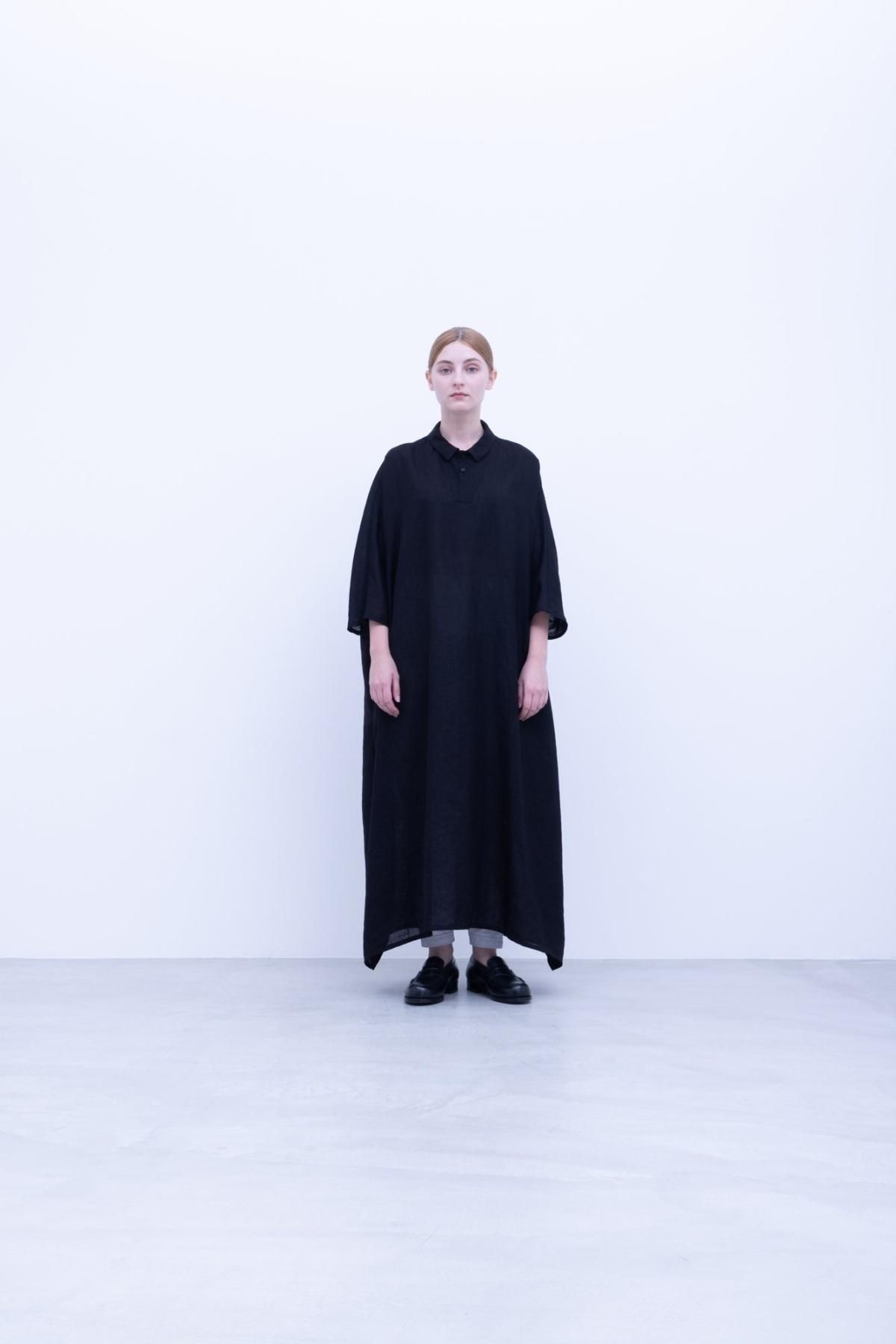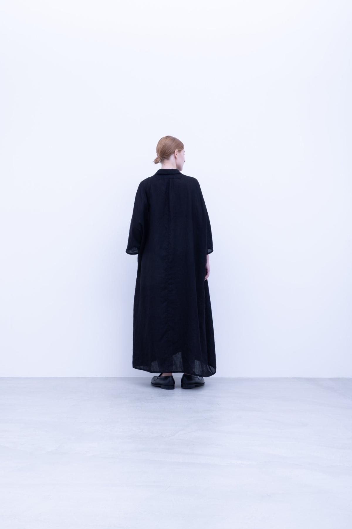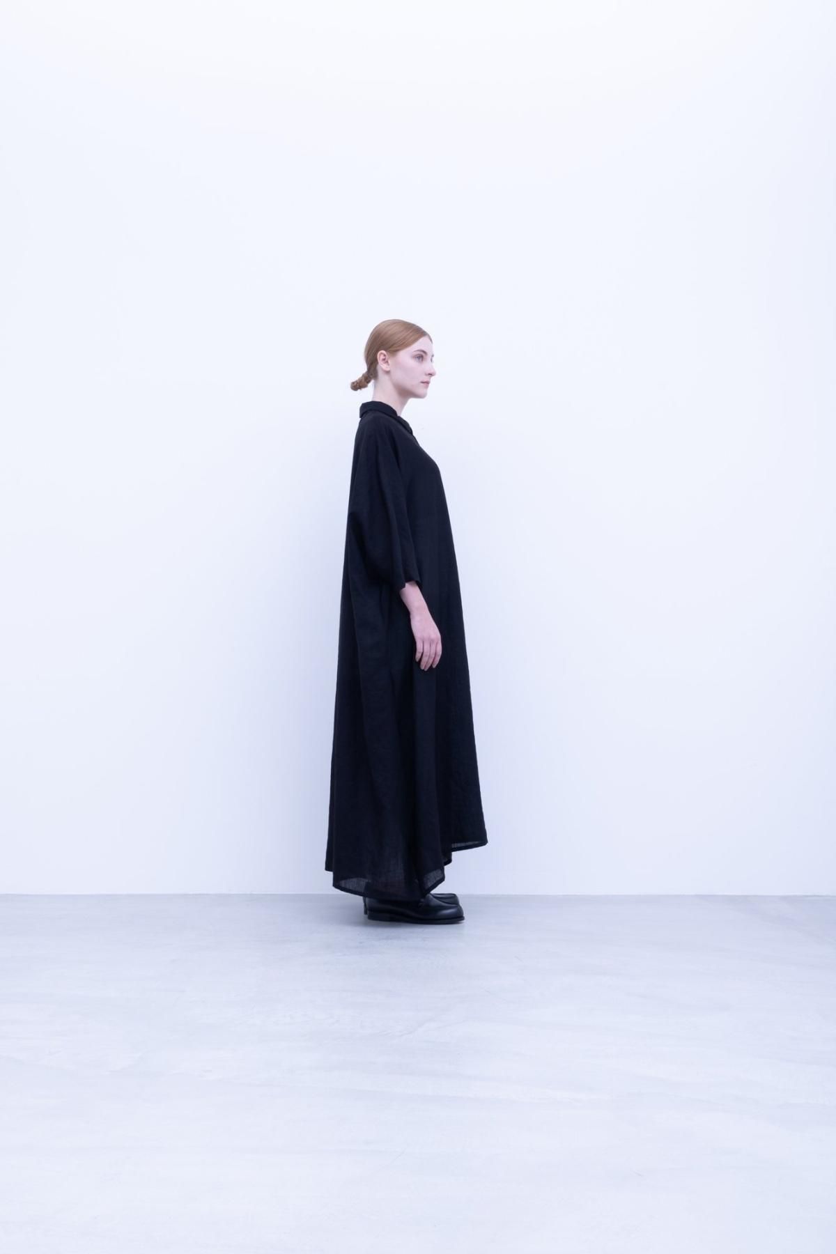 【商品名】スラブトリアセテート・ガーゼ スキッパーワンピース/black[size 2_]