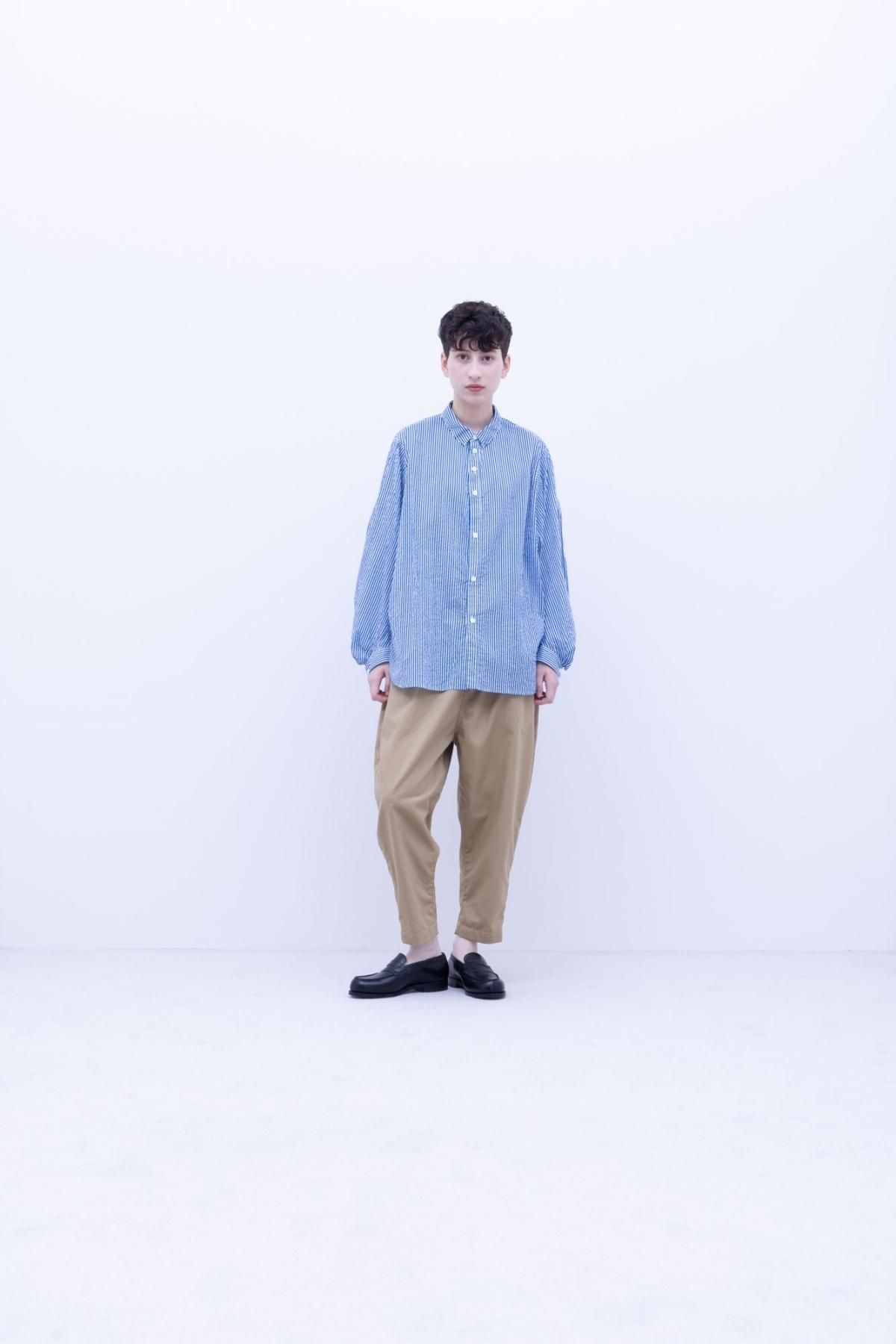 円錐をイメージしたシリンダーパンツ。通常のテーパードしているパンツとはまた違い、シルエットが強調され足元はすっきりと履いていただけます。