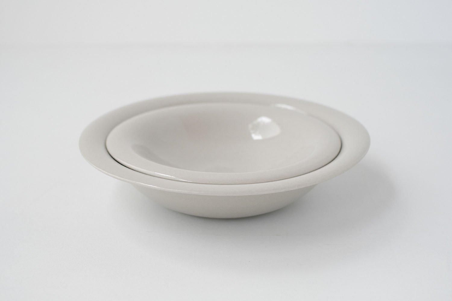 岩田さんの故郷である鳥取県の砂丘の稜線からインスピレーションを得たという丘陵ボウル。有機的な曲線によって滑らかな光と影が浮かび上がります。深すぎず浅すぎずの深さで、和洋中、デザートやお菓子何を置いても食卓が映える汎用性の高い器です。