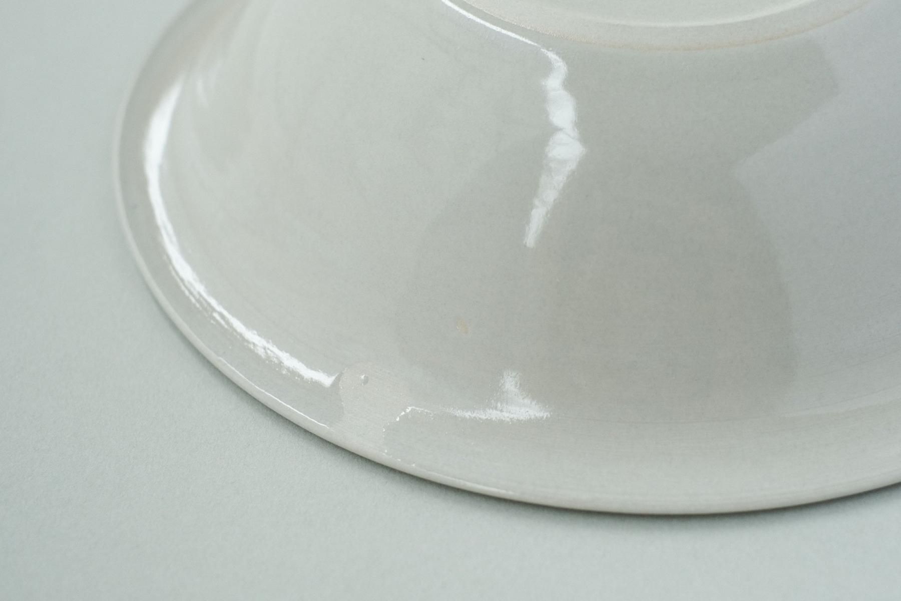 ・ろくろ成型のほか、鋳込み成型という手法を用いているため、器の底や側面に注入痕や割り型の跡が見られる場合がございます。また、中には工程の中で生まれるクラックや小さな欠け、釉剥げなどが見られる場合がございます。岩田さんの作品の特徴としてあえて残しているものですので、作品一つ一つが持つ個性としてお楽しみください。