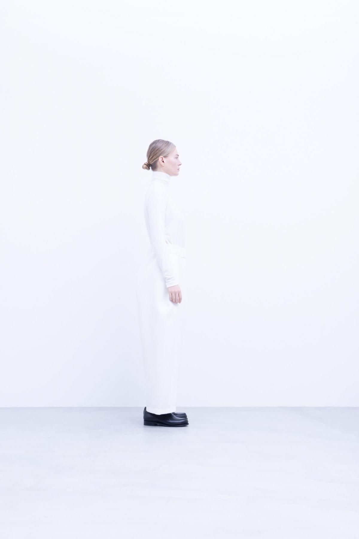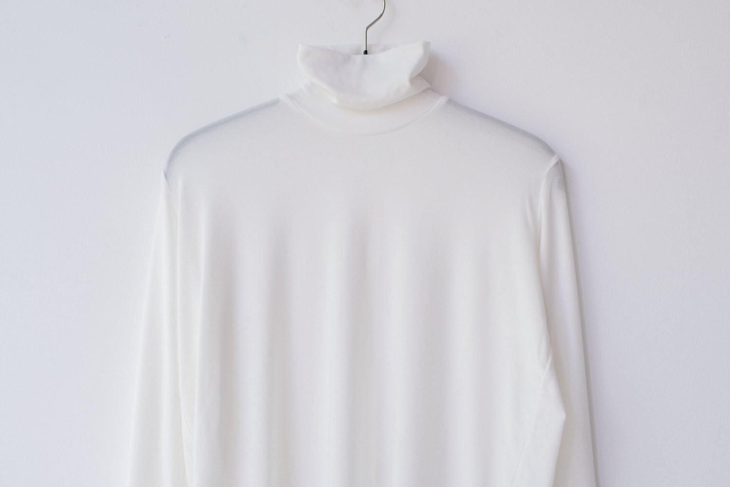 ストレッチが効くためタイトに使える生地ですが、あえてルーズな部分を作ることでゆったりとした雰囲気に仕上げています。非常に肌当たりも良く着合わせるアイテムを選ばないので、秋冬シーズンのインナーとして汎用性も高い1枚です。