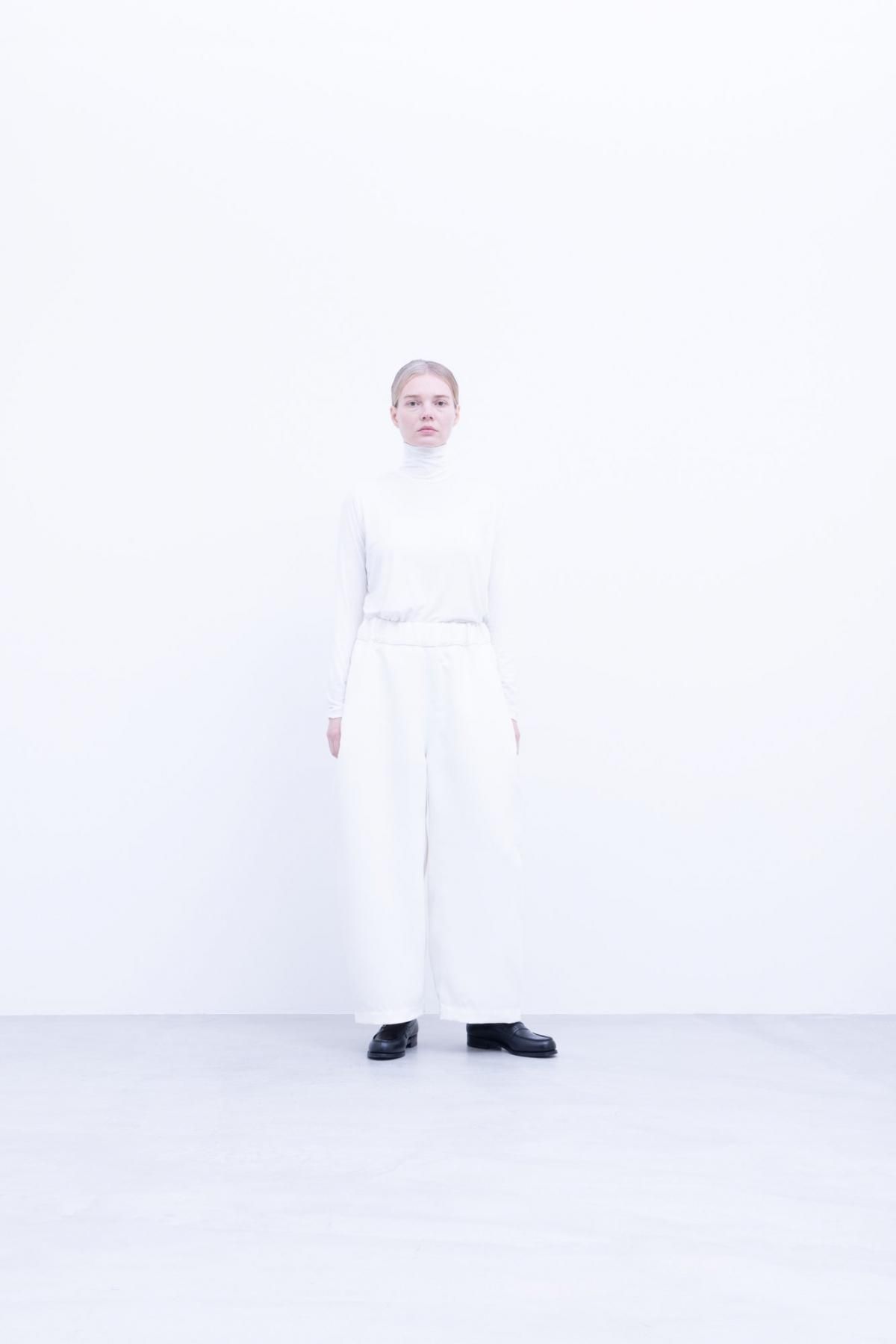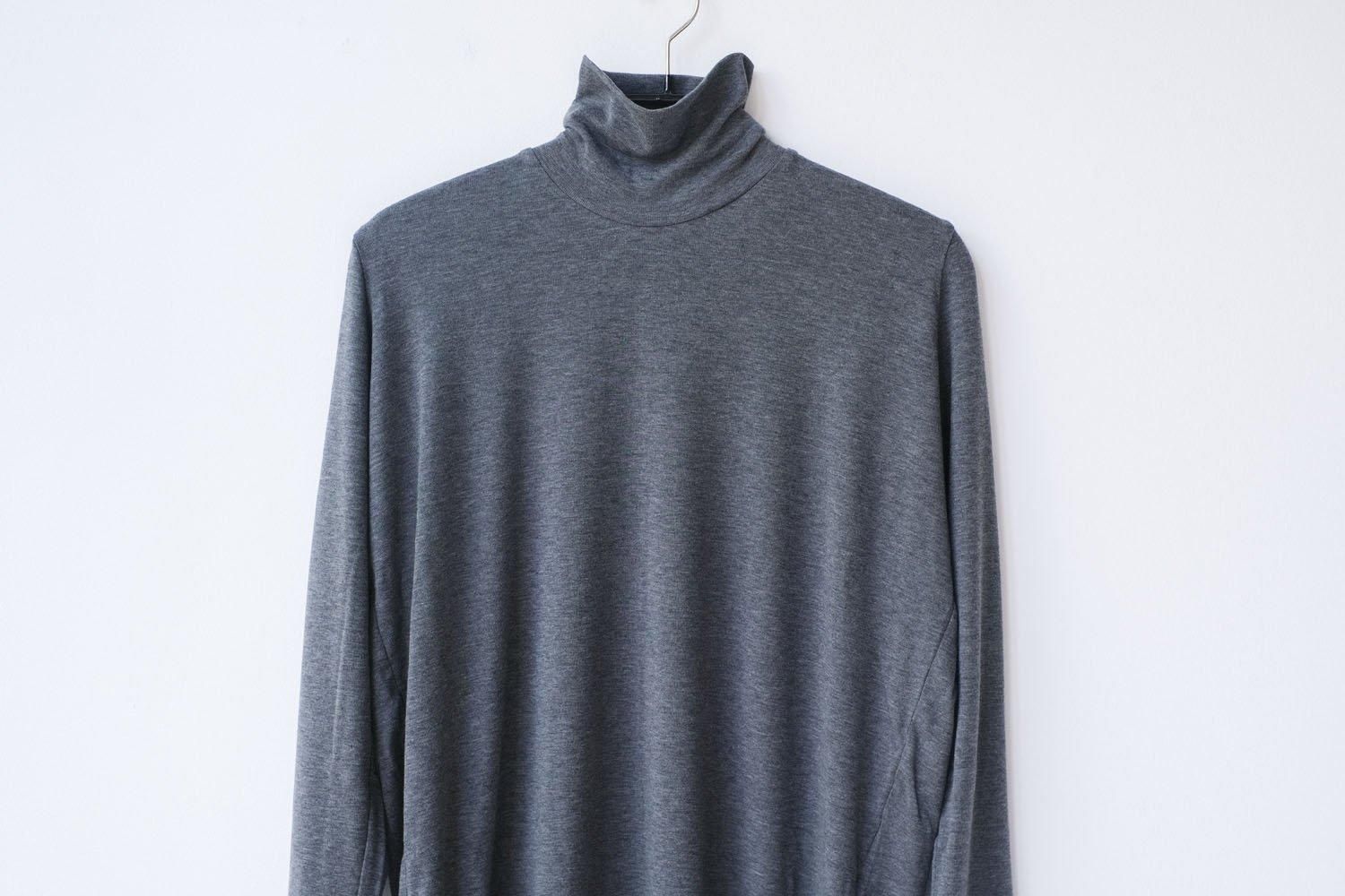 ストレッチが効くためタイトに使える生地ですが、あえてルーズな部分を作ることでゆったりとした雰囲気に仕上げています。非常に肌当たりも良く着合わせるアイテムを選ばないので、秋冬シーズンのインナーとして汎用性も高い1枚です。