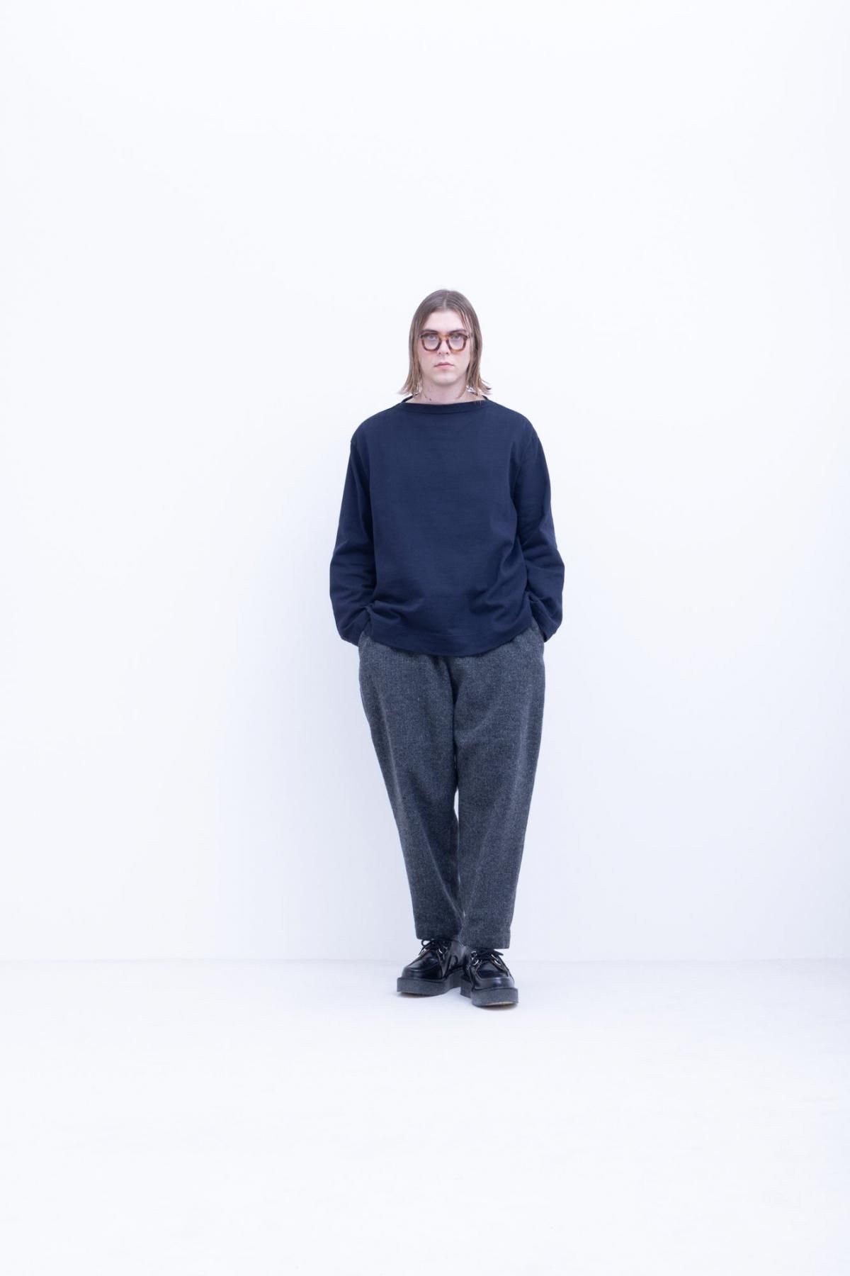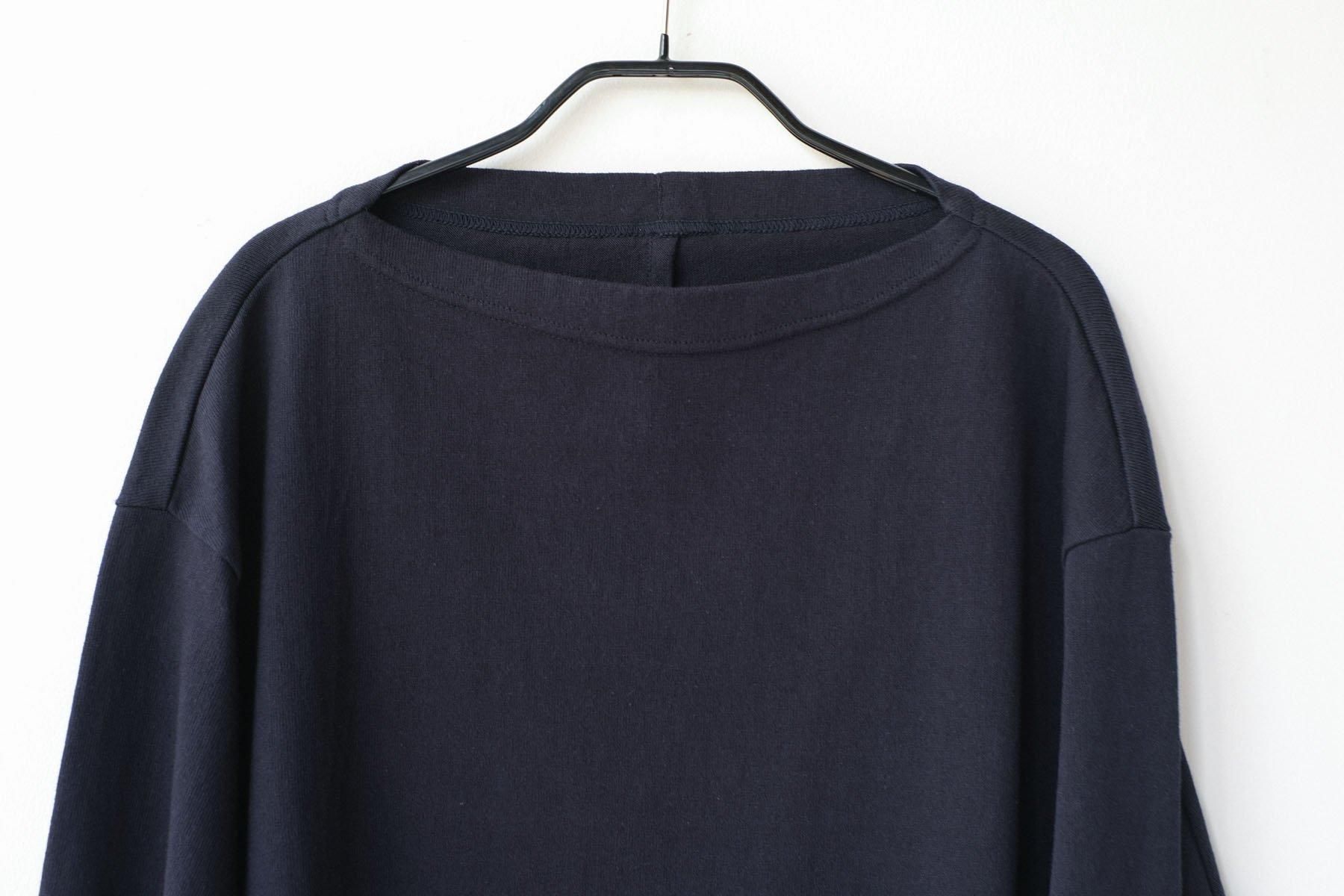 【商品名】十六番双糸空紡綿天竺 ボートネックロンT/Navy