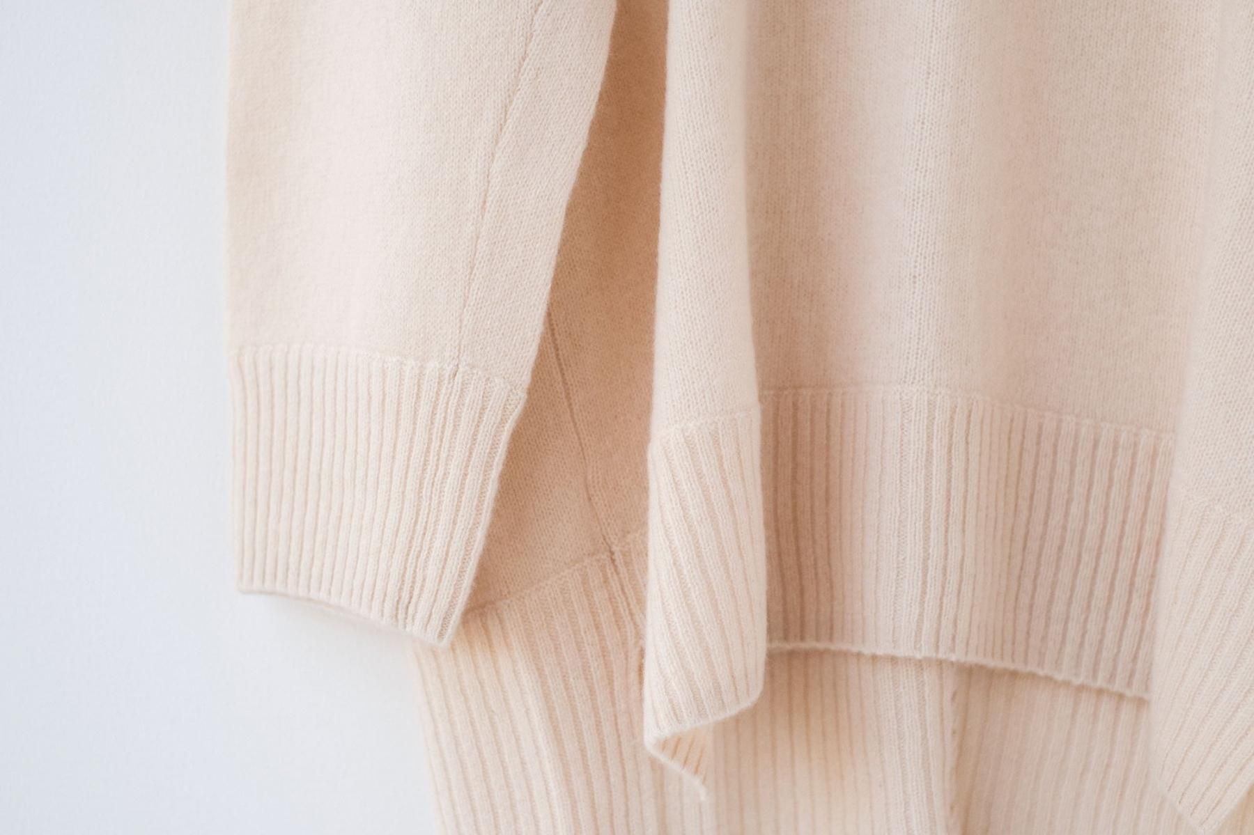 最初はやや不安定に見える編み組織も着込んでいくにつれてカシミア同士が絡み合い良い風合いへと変化していきます。