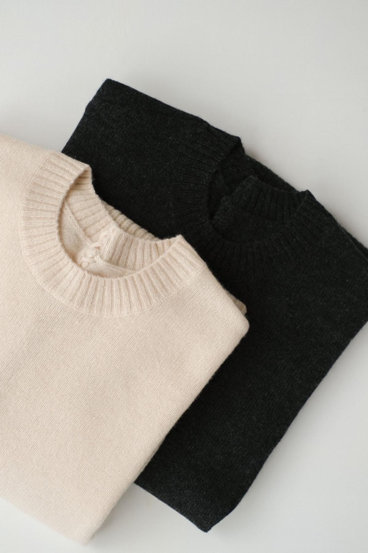 カシミヤ100%の26/2の糸を7ゲージor12ゲージの編機で編んだ横編みニットです。