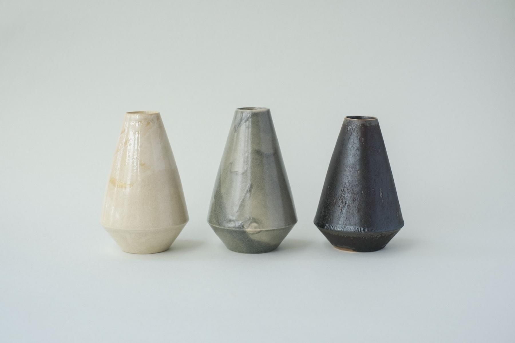 【商品名】花器 三角錐 [白土マンガン]