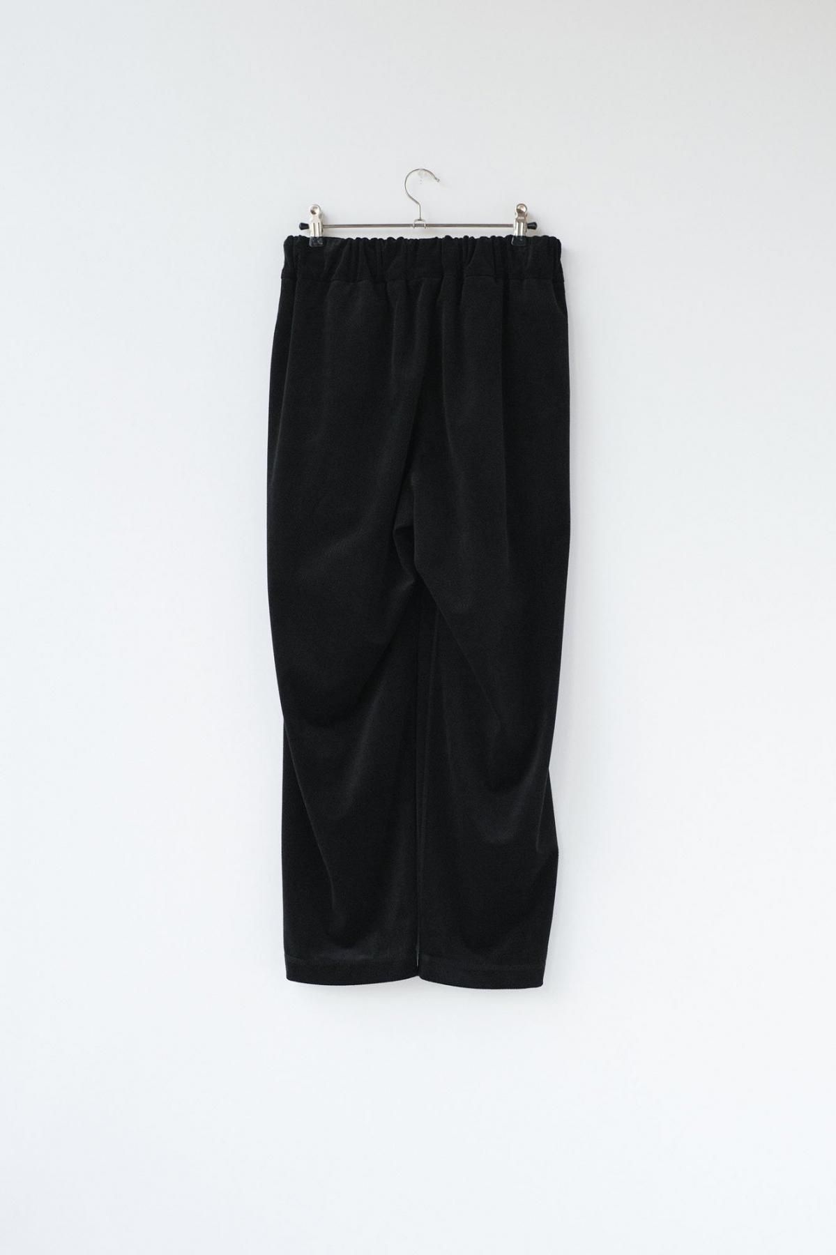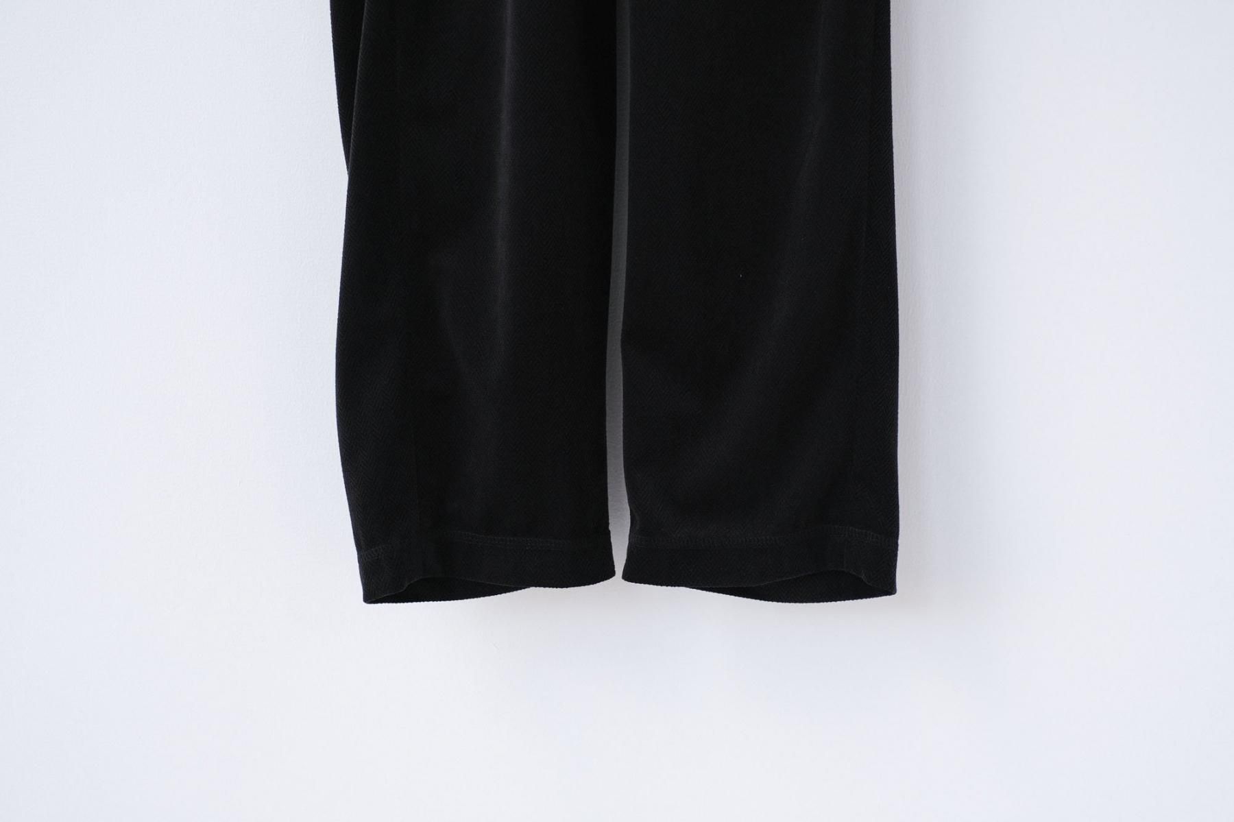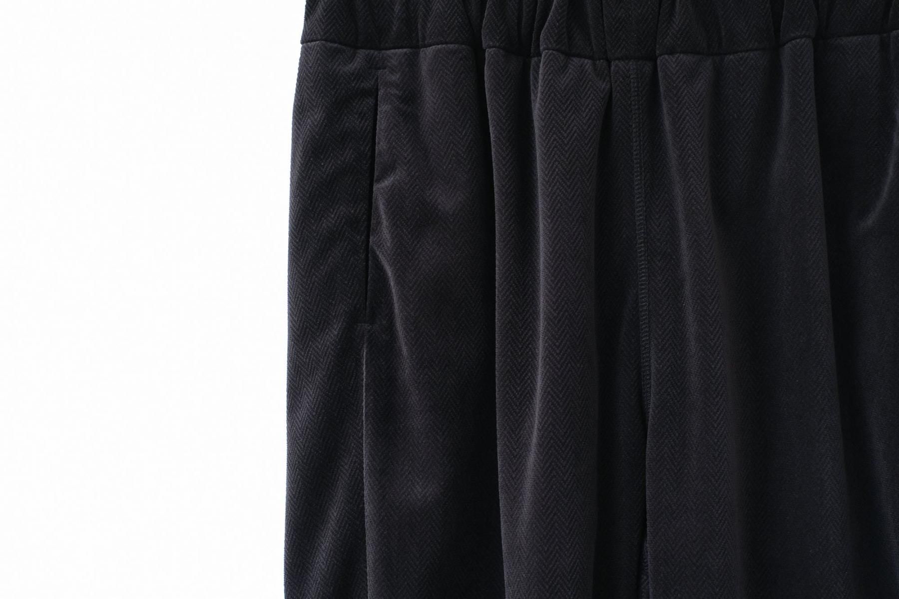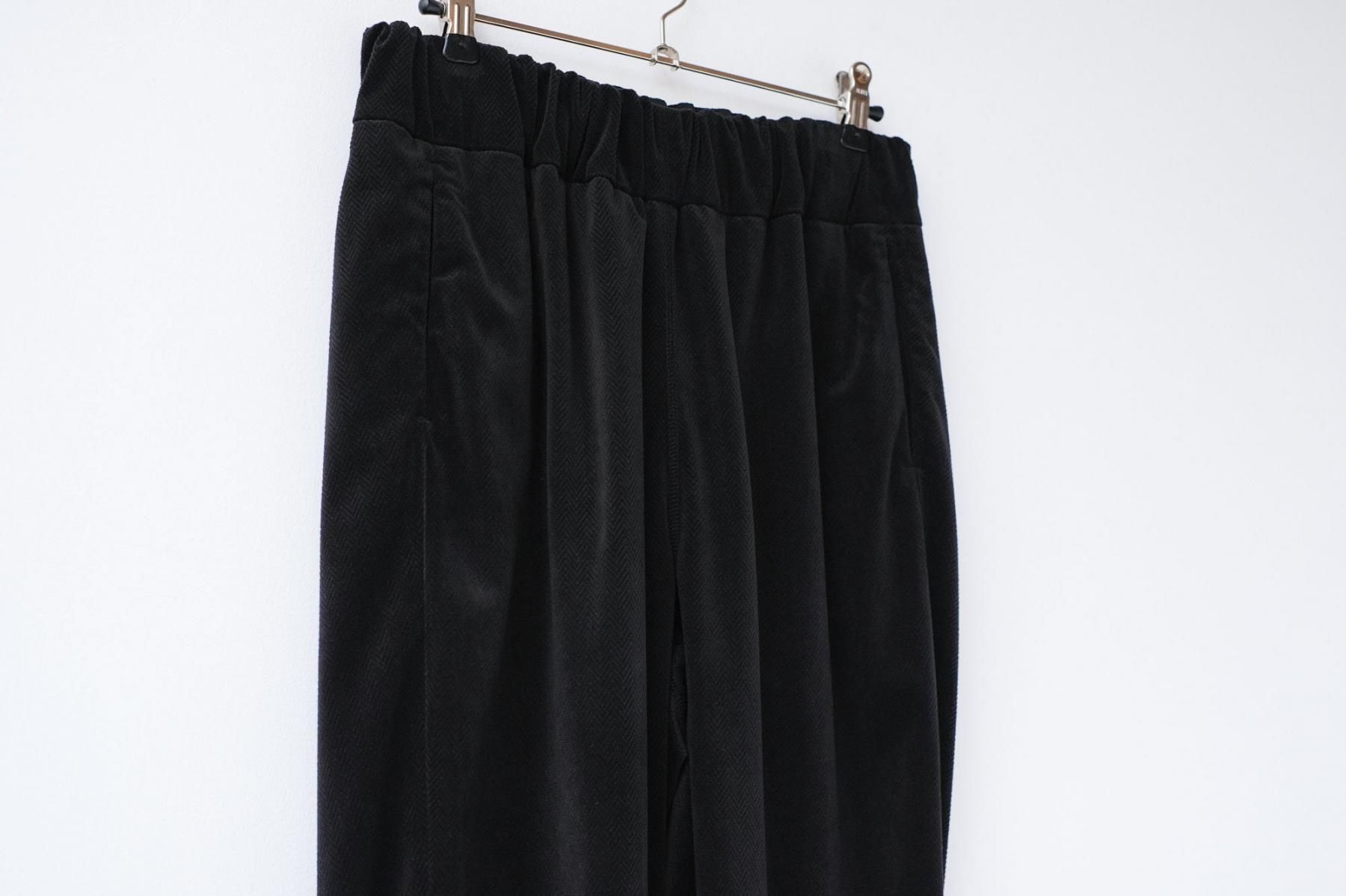 【商品名】ポリエステル・織柄ベロアニット ツイルorへリンボン ストレートパンツ/Black