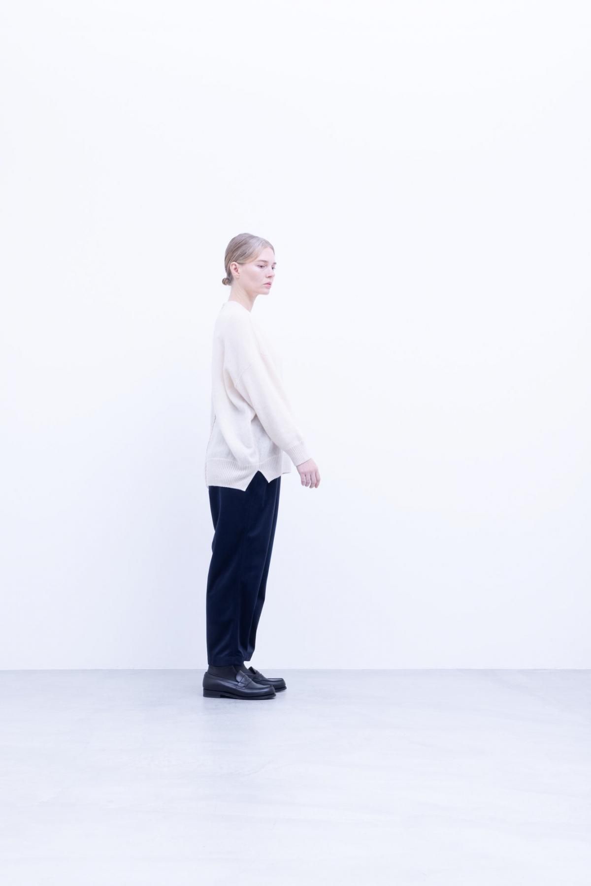 表面が滑らかで分厚すぎないため着ていてもストレスが少なく履けます。ニットとの相性も抜群で冬らしさを出したい時期にちょうど良い生地感です。