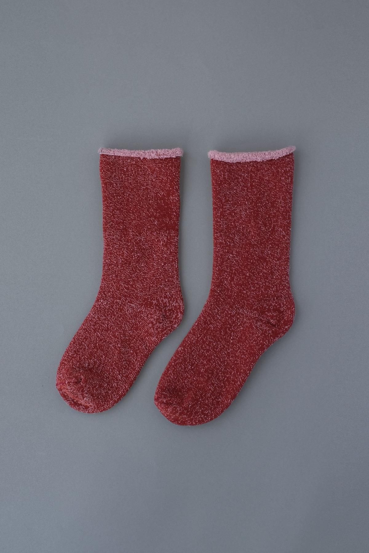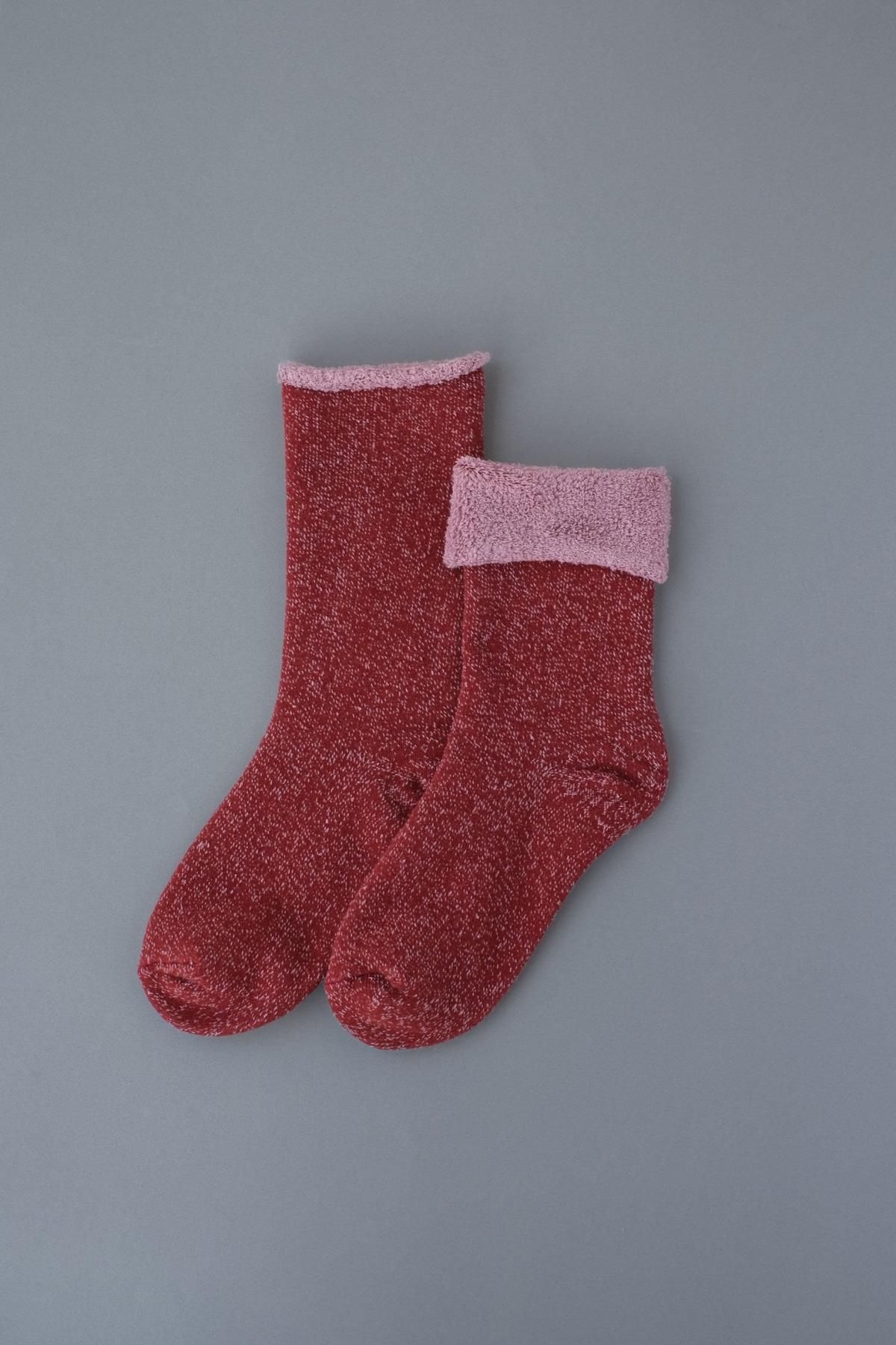 内側のシルクは、どの色も絹糸を贅沢に使ったパイル編みで 足裏の汗や老廃物をしっかり吸収・放湿。二層構造でありながら生地は一枚なので相互にずれることなく、ほどよい厚みで一年を通して履いていただけます。シルクは「紬糸」を使っているので、シルク特有のツルツルとした感じというよりは麻に近い肌ざわり。
