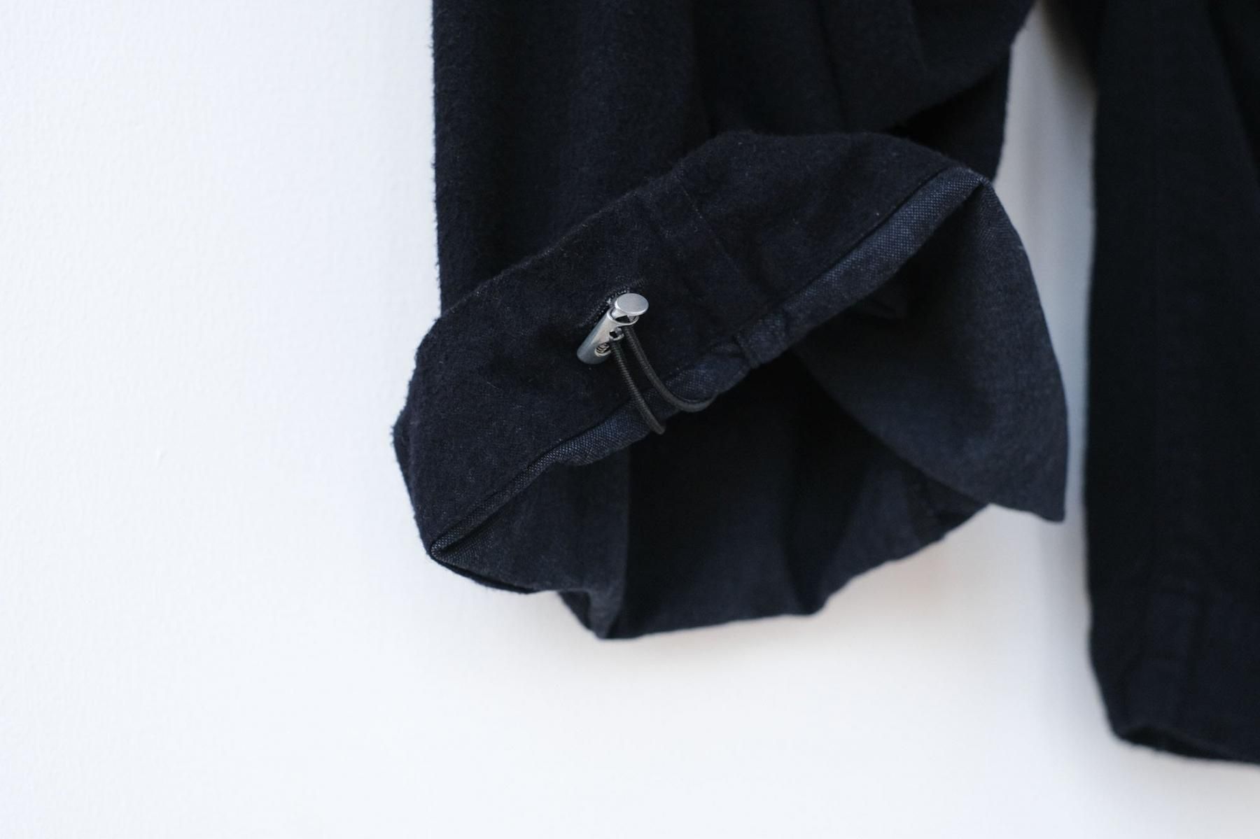 レーヨンの量が多い生地ですので製品染めを施すことで生地のコシがなくなり、独特の重みと落ち感をもった心地よい生地に仕上がっています。製品染めは釜が小さいためロットによって色差が出ます。セットアップにする際色味が若干異なる場合があります。ご了承ください。起毛が濃く染まり奥のベース生地が薄く染まります。染めムラのように感じる場合がありますが、これはこの生地の特徴です。また、サイズ感も個体差が出ますのでご了承ください。