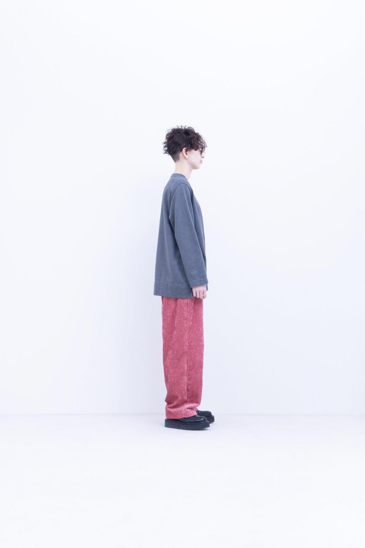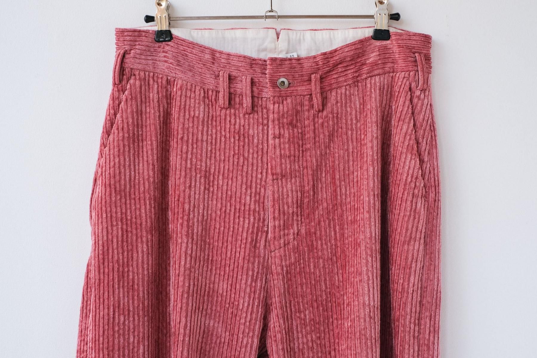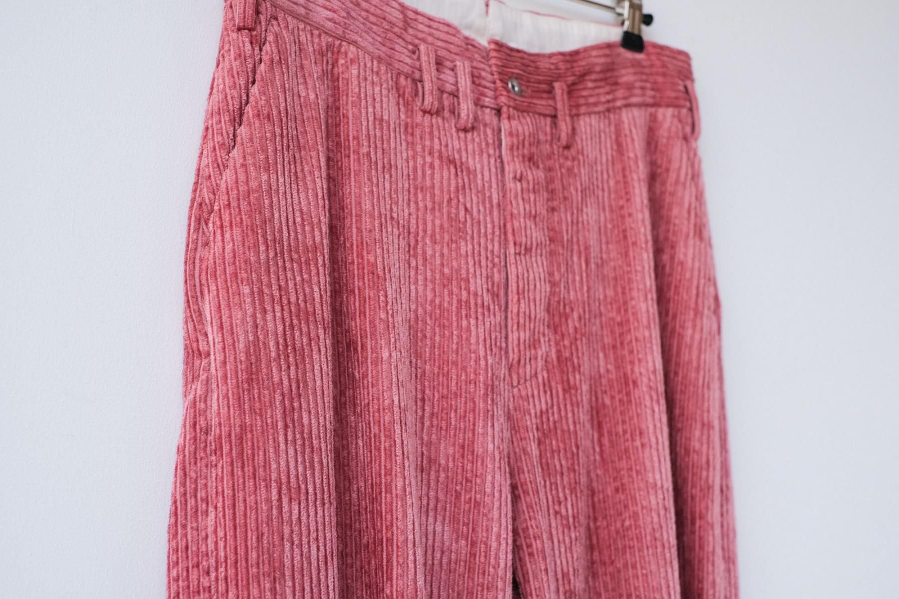 【商品名】綿レーヨン・グロッシーコーデュロイ ストレートボタンフライパンツ/Smoke Pink[size XS]