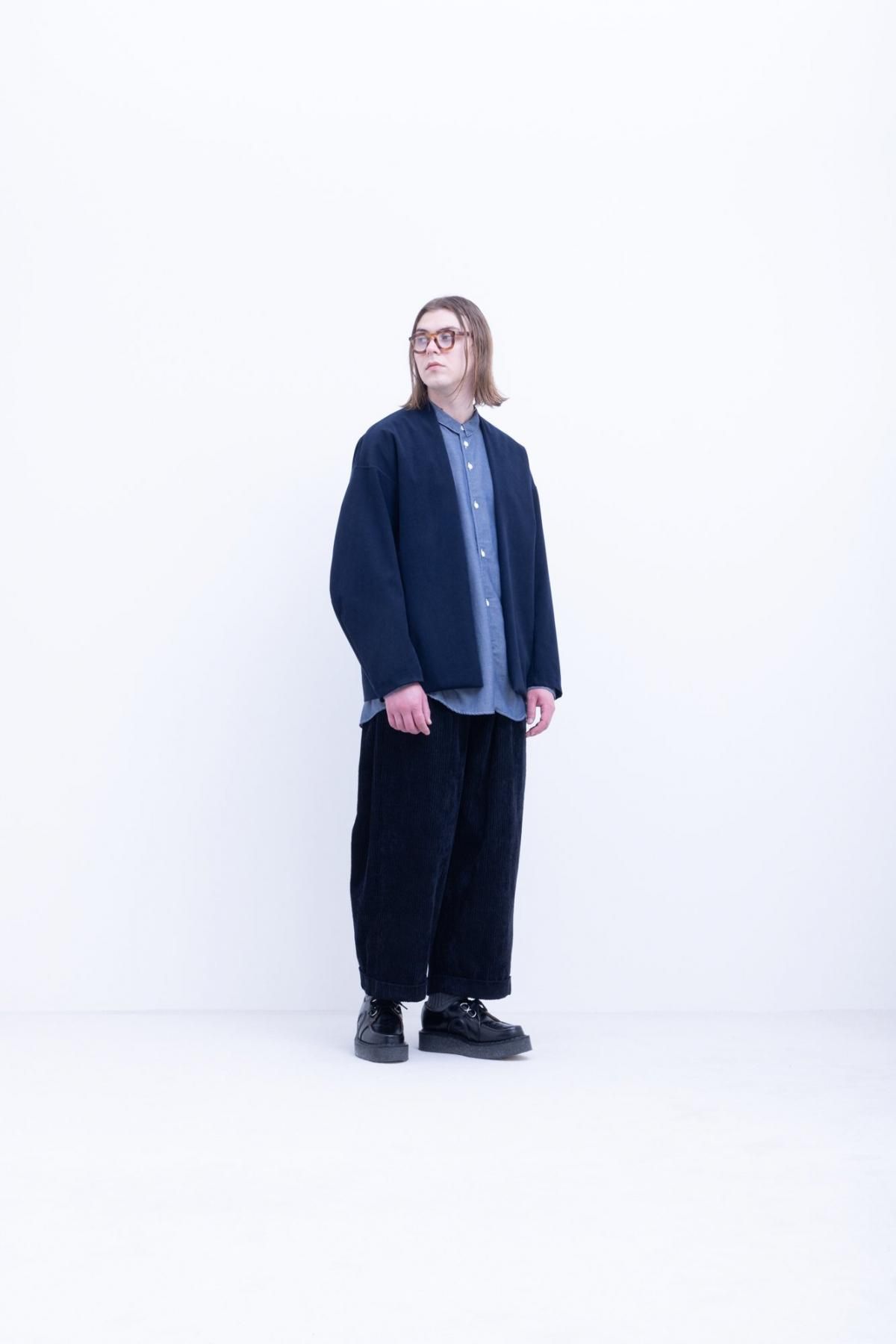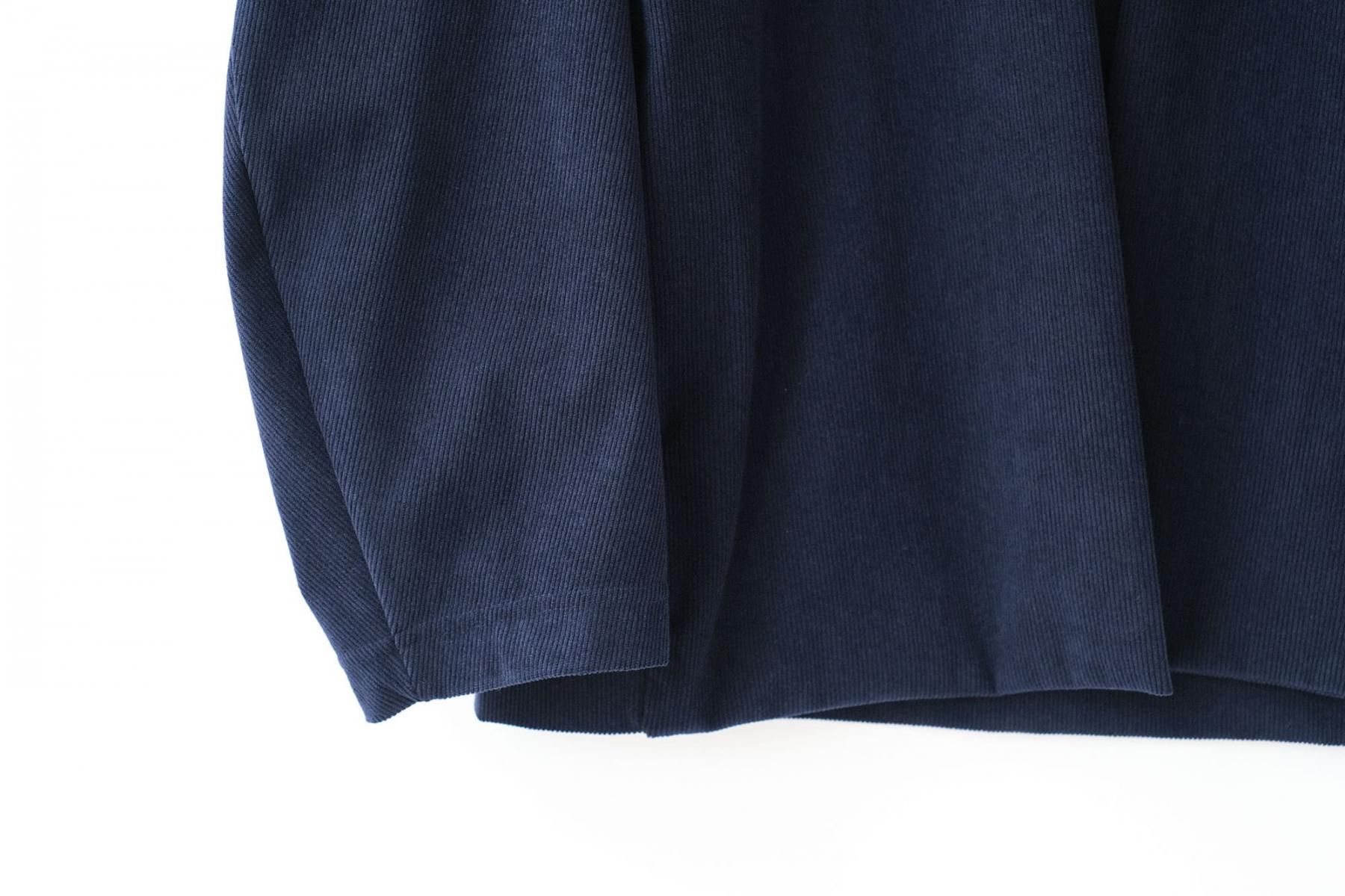 オモテ面の畝部分への起毛加工によってコーデュロイ調のテクスチャーを表現しているため一般的なパイルカットのコーデュロイとは違い毛羽が抜けず、ストレッチ性もありお手入れも簡単で扱いやすい生地です。