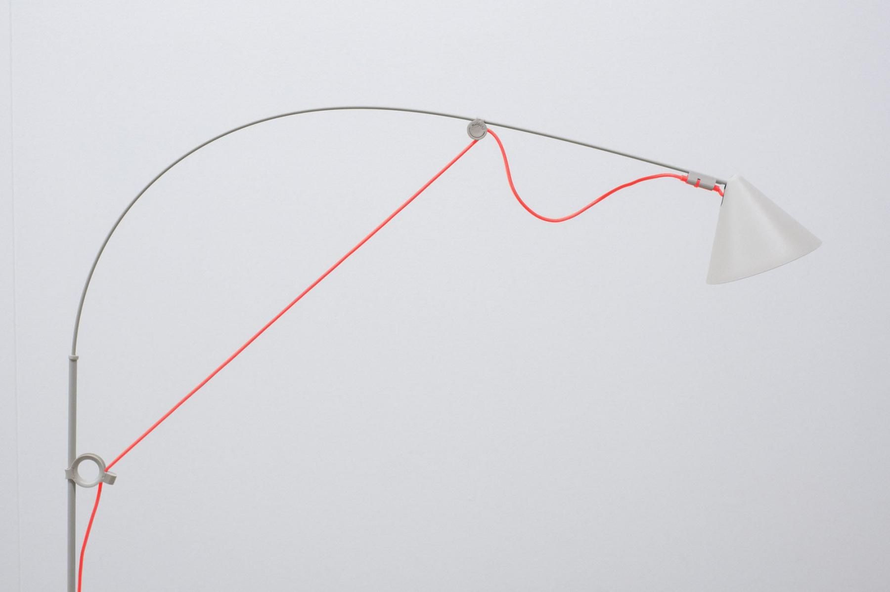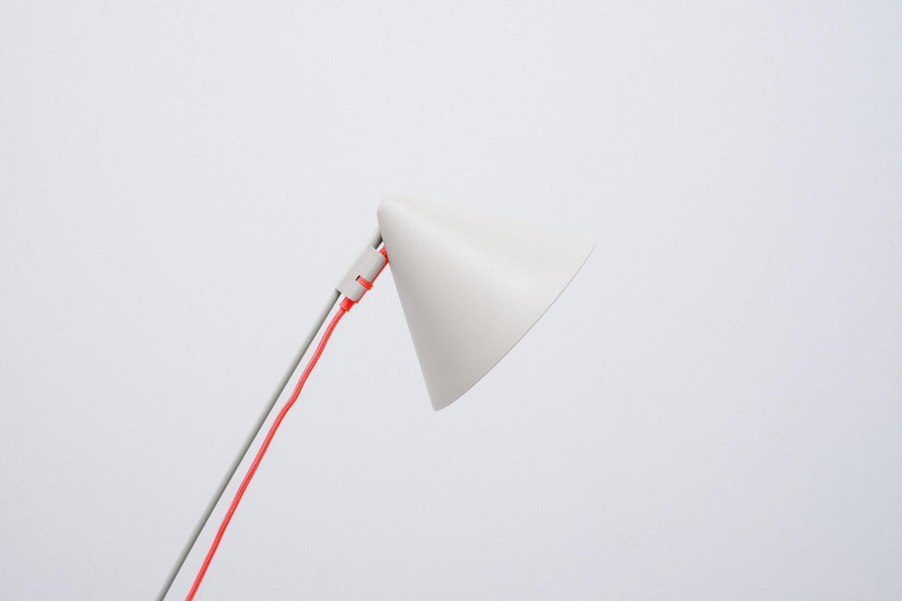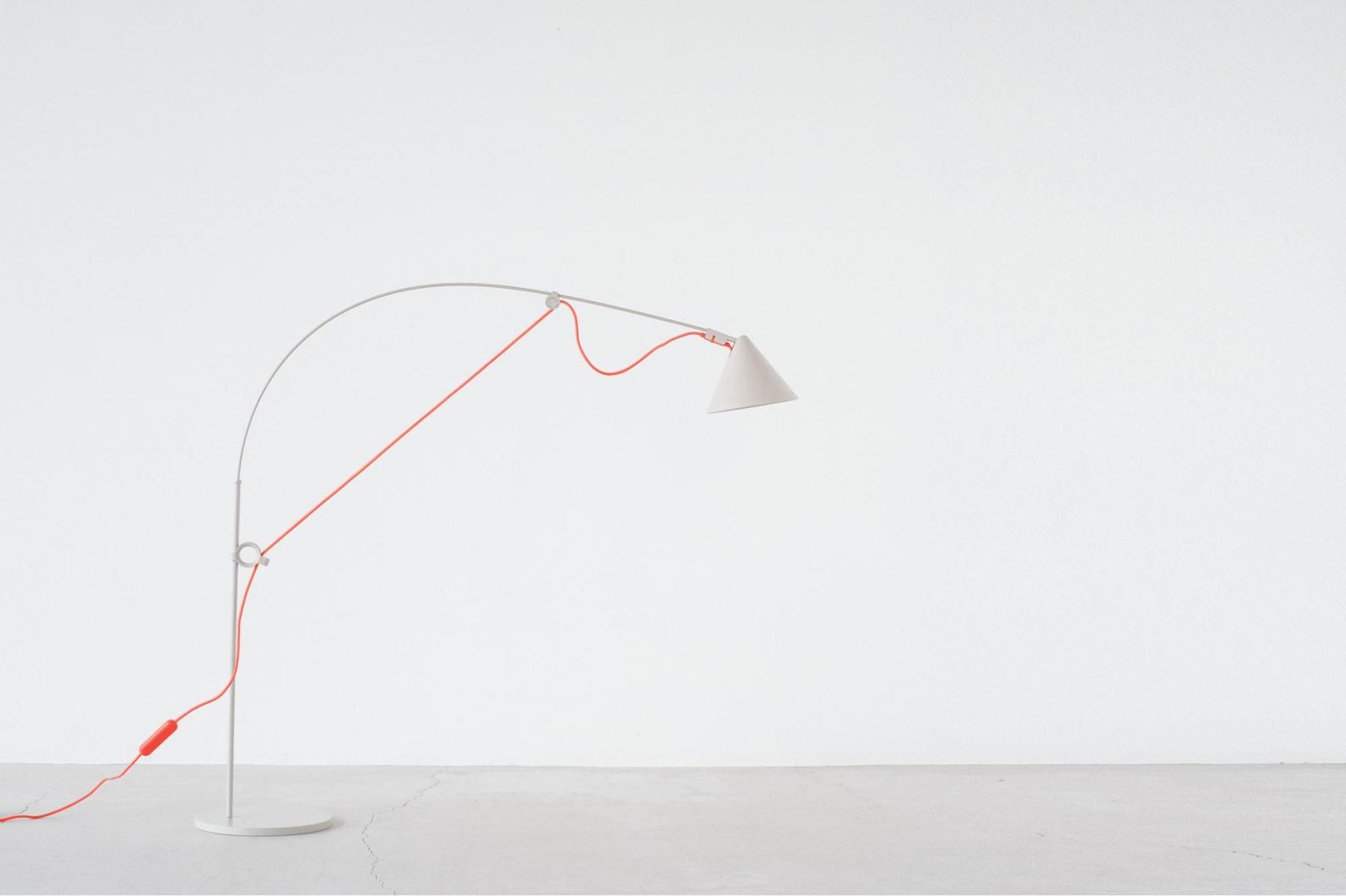 グラスファイバー製のロッドに二つの可動式調整リングとケーブルが取り付けられており、リングを上下に移動させることでロッドとケーブル間のテンションが変化し、ランプの高さを無段階で調節することができます。またこのランプは、全てのパーツを解体することが可能で、最小のパッキングで配送が可能なほか、故障したパーツはパーツ単体で交換することができます。また、ロッドやベース、プラグなどの多くは、一般的に流通している製品で使用者が自ら手に入れることができるといった徹底した使用者と環境への配慮もこのプロダクトの魅力です。