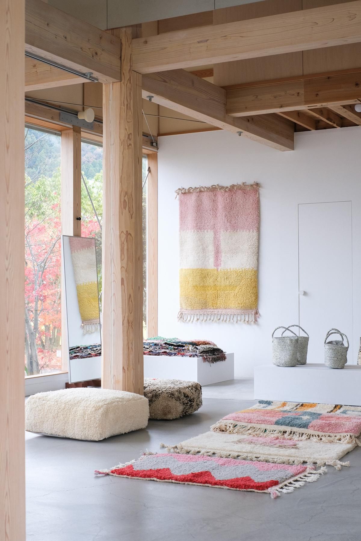 サイズ感は大きすぎず、ソファの足元やベッドの脇などにもお使いいただけるほか、壁にかけて大判のタペストリーとしてもお勧めです。