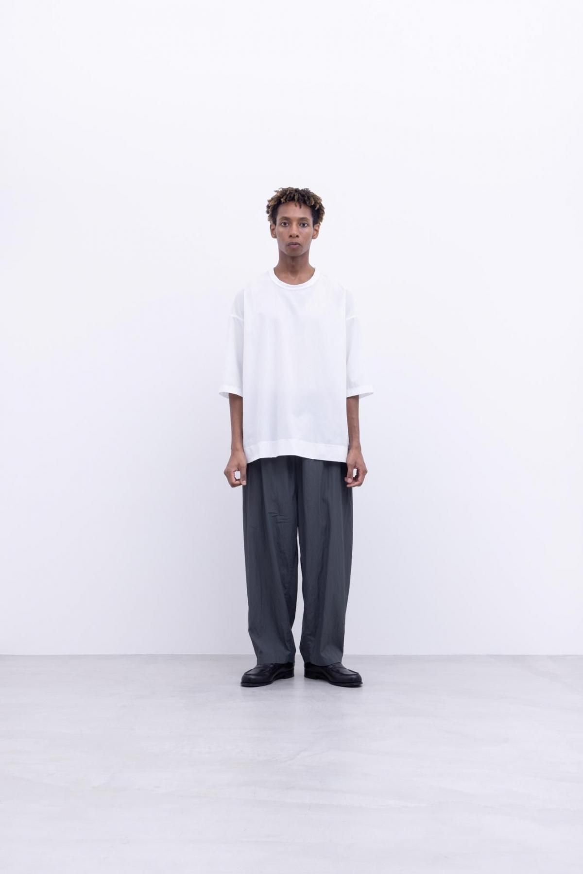 細番手の生地で織られているためとても薄く軽量で、夏場にとても涼しく着られる5分袖クルーネックプルオーバー。