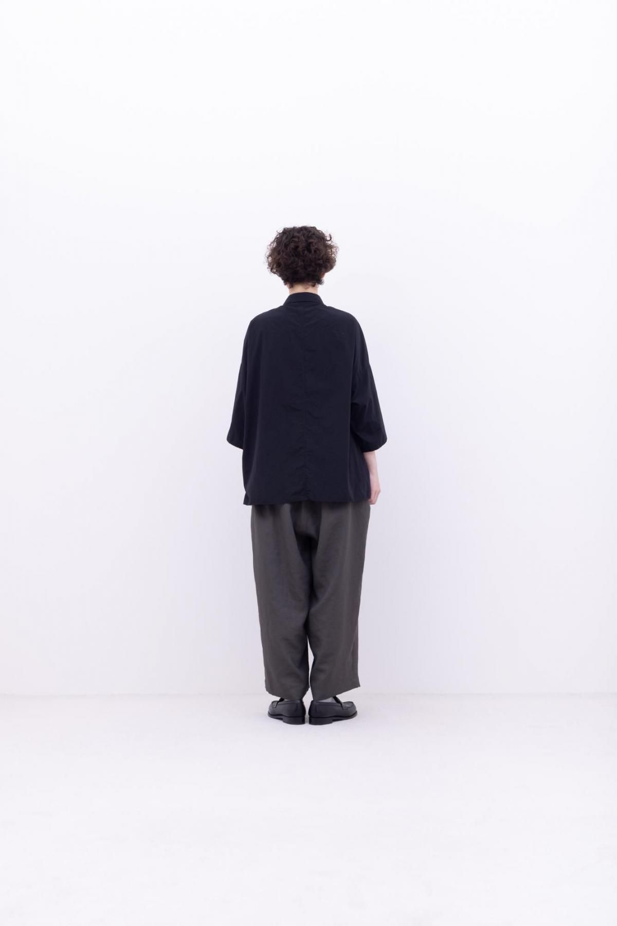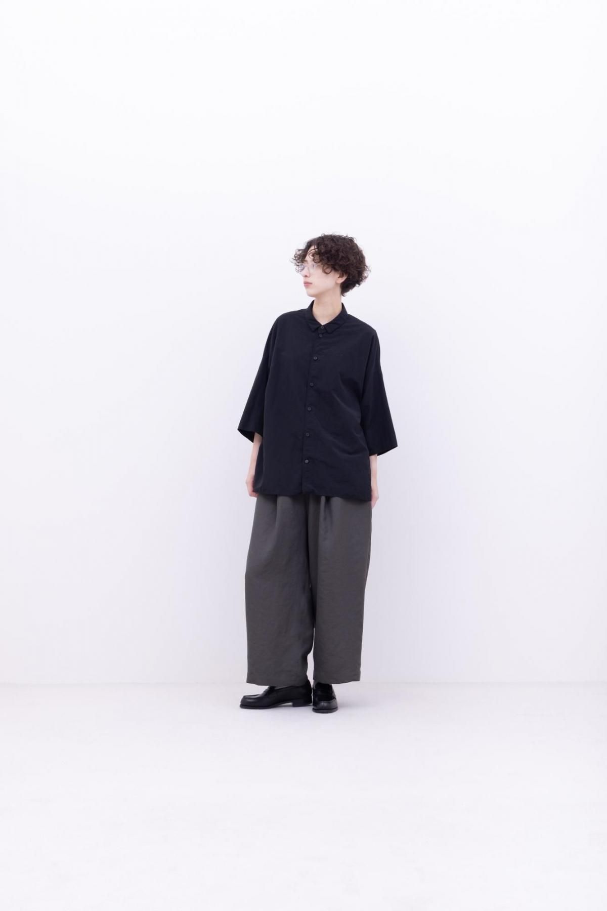 起毛加工が施されているのでナイロンでありながらソフトなタッチの生地の6分袖スクエアスリーブシャツです。身幅が広いため空気の通りがよくかなり涼しく快適に着用いただけます。