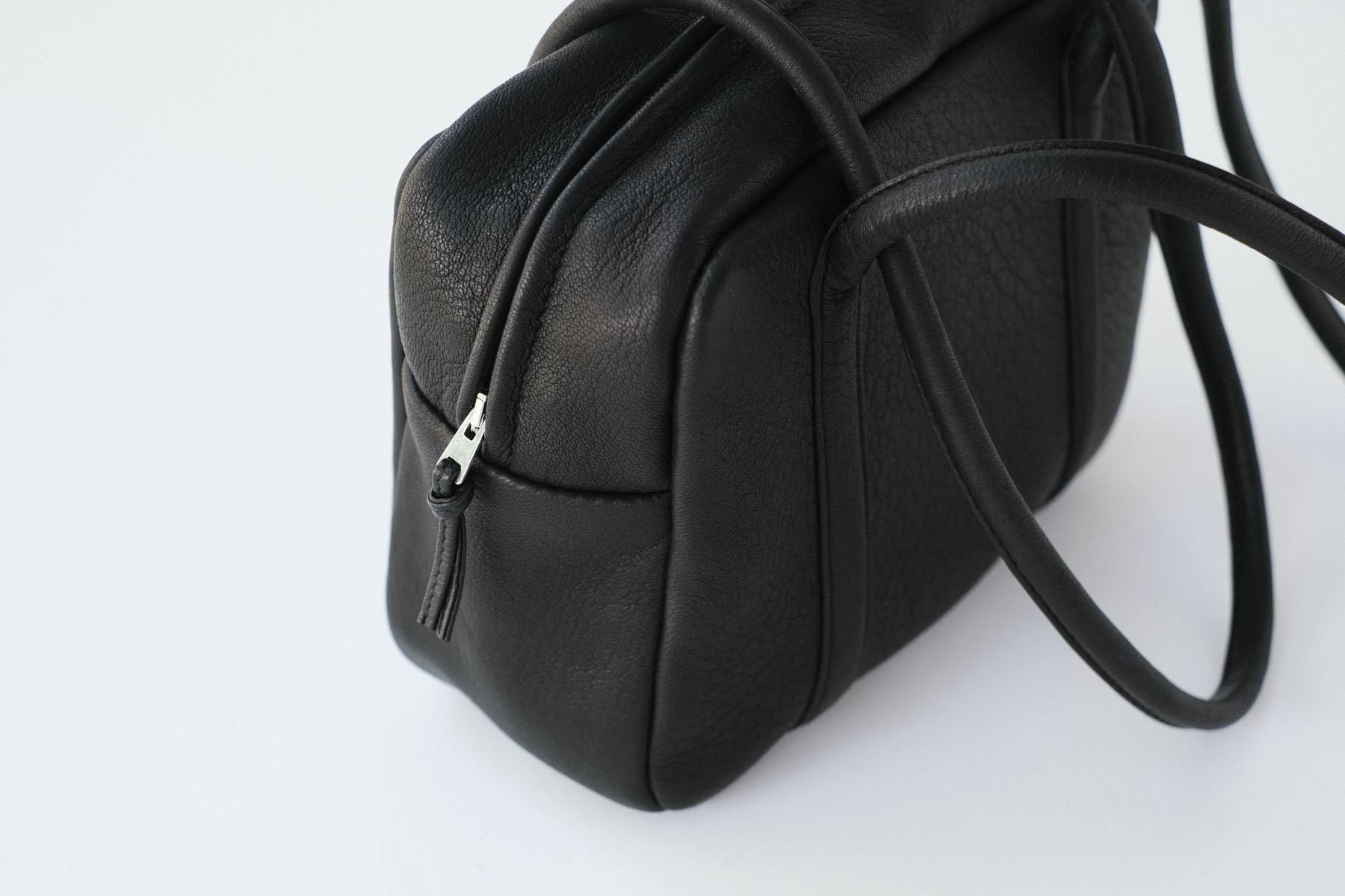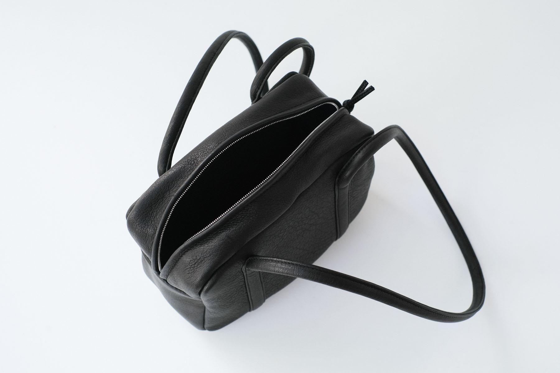 ロングハンドルなので肩からかけやすく、筒状に伸びる丸いフォルムがアイコニックなボストンバック。使い勝手を気にして、サイドにもジップのポケットがついています。