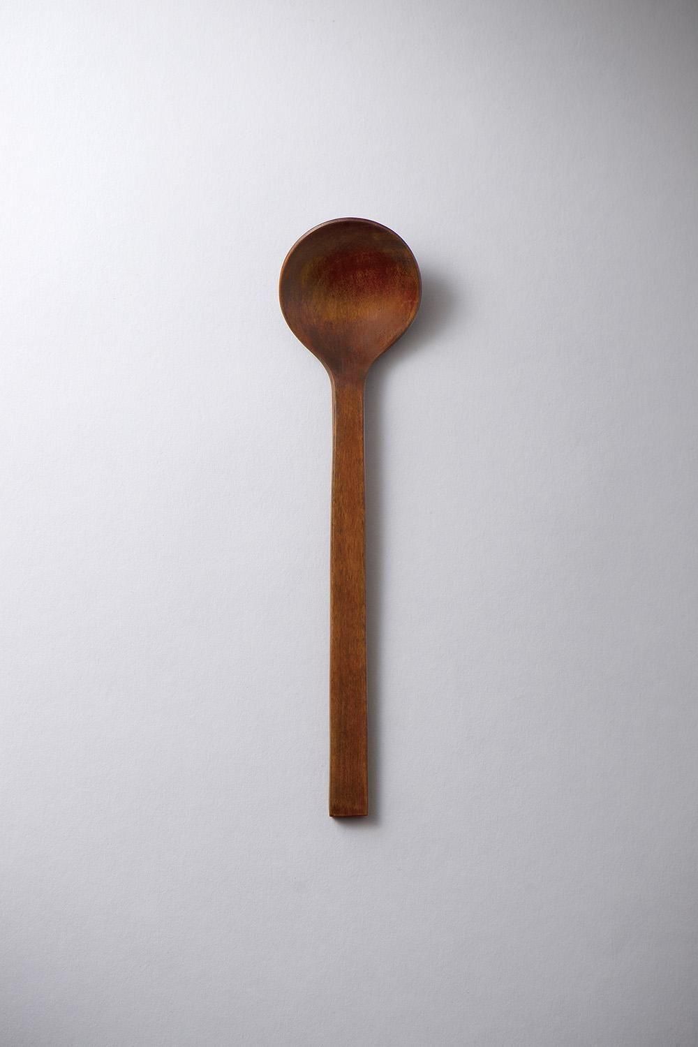 お玉のような丸みを持った拭き漆仕上げの木製スプーン。スープや炒飯など、日常的な幅広いシーンでお使いいただけます。