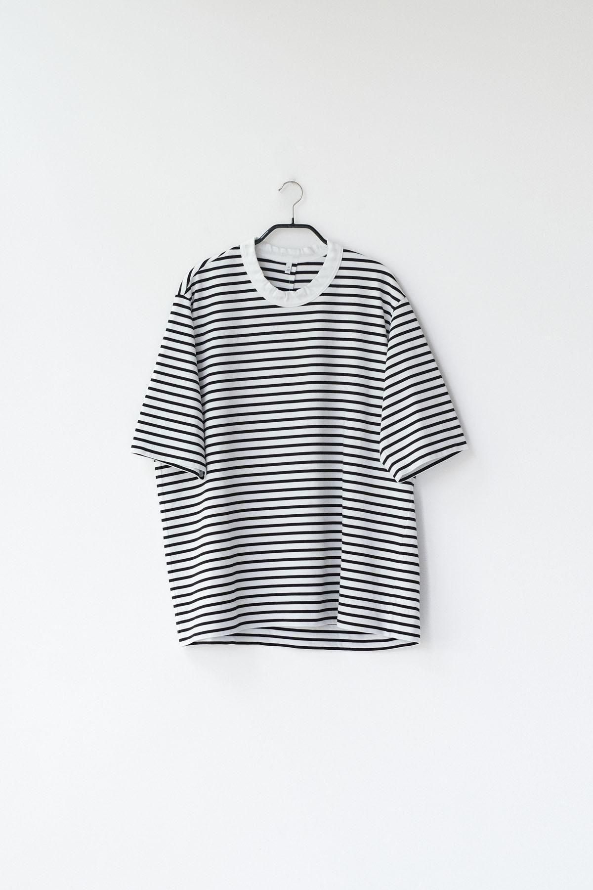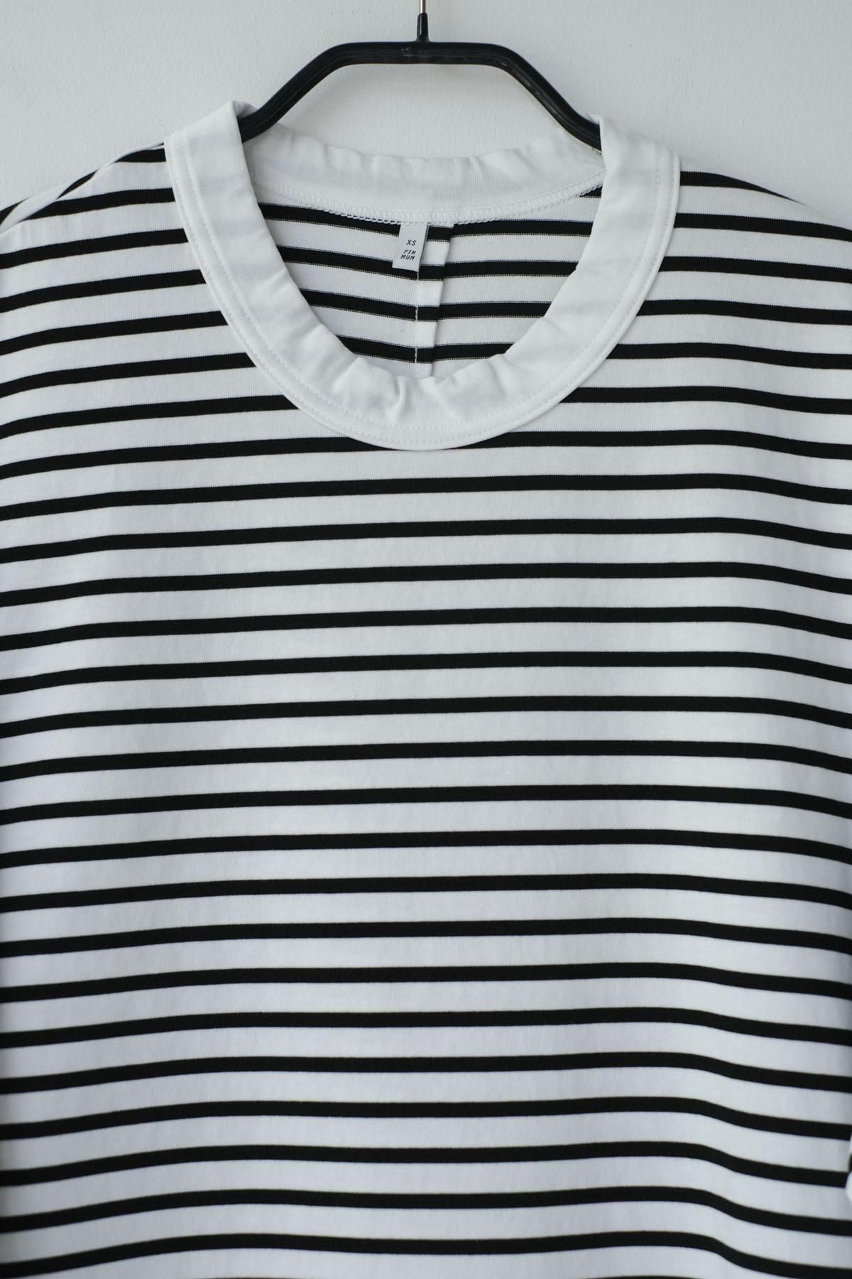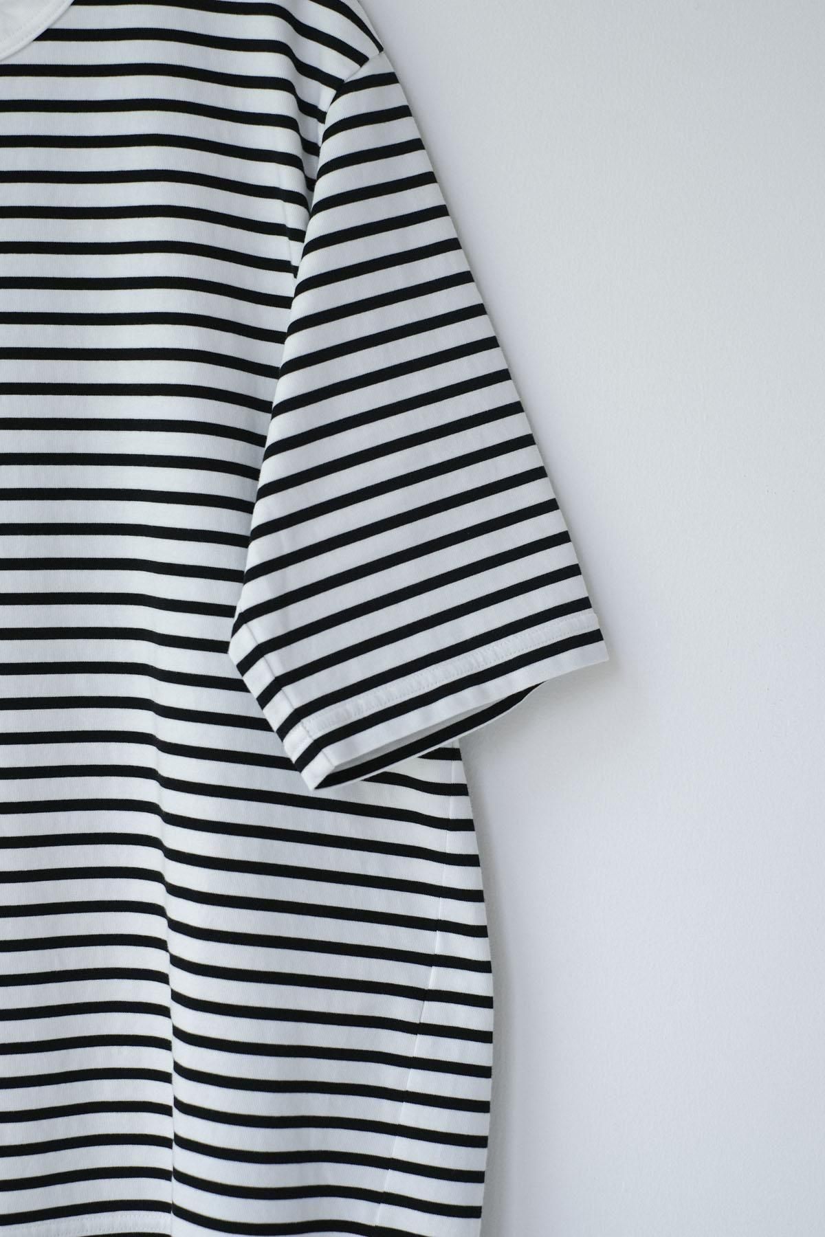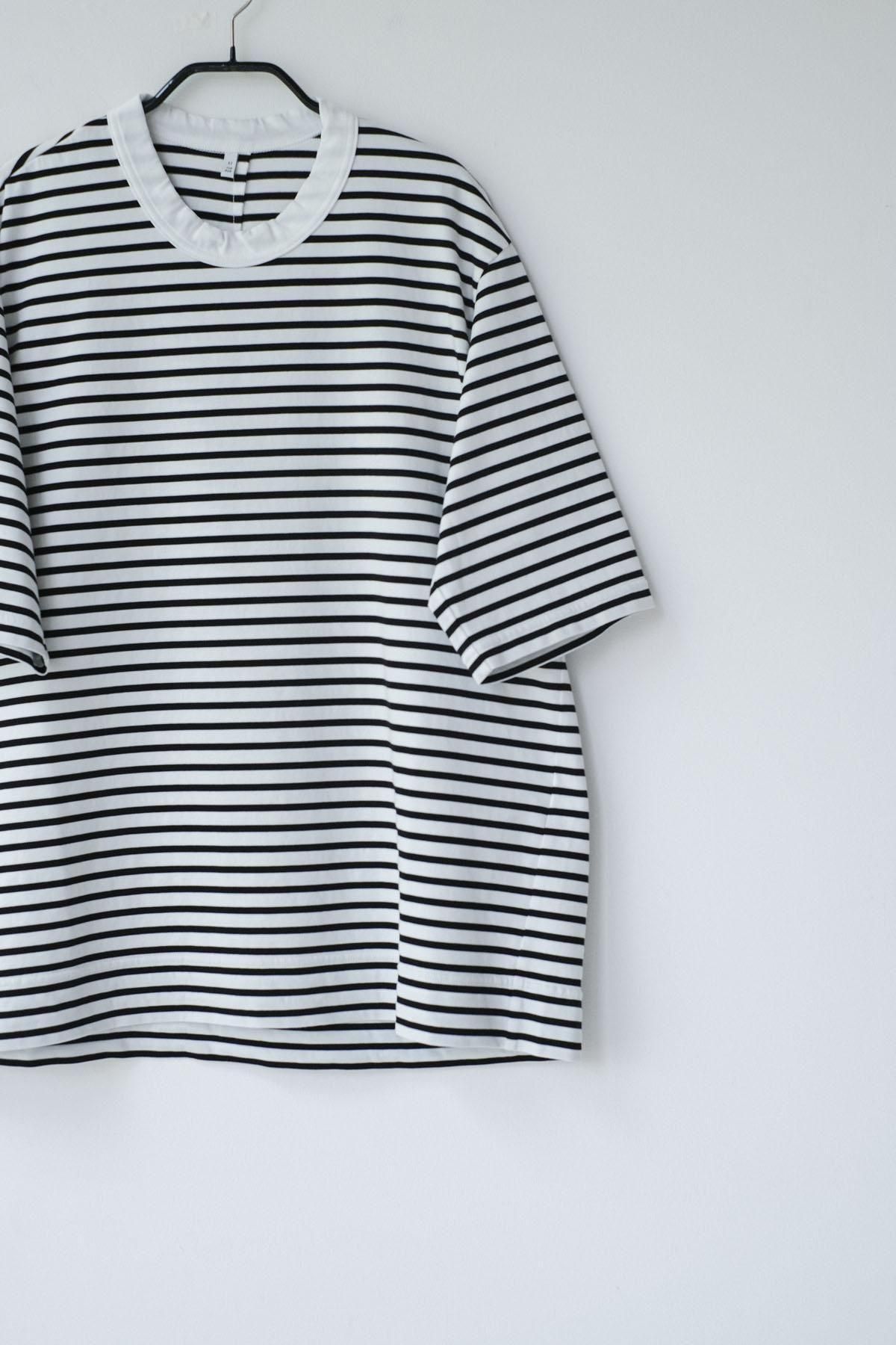 【商品名】微強撚綿天竺 ボーダークルーネックT/WH base × BK bd[size XS]