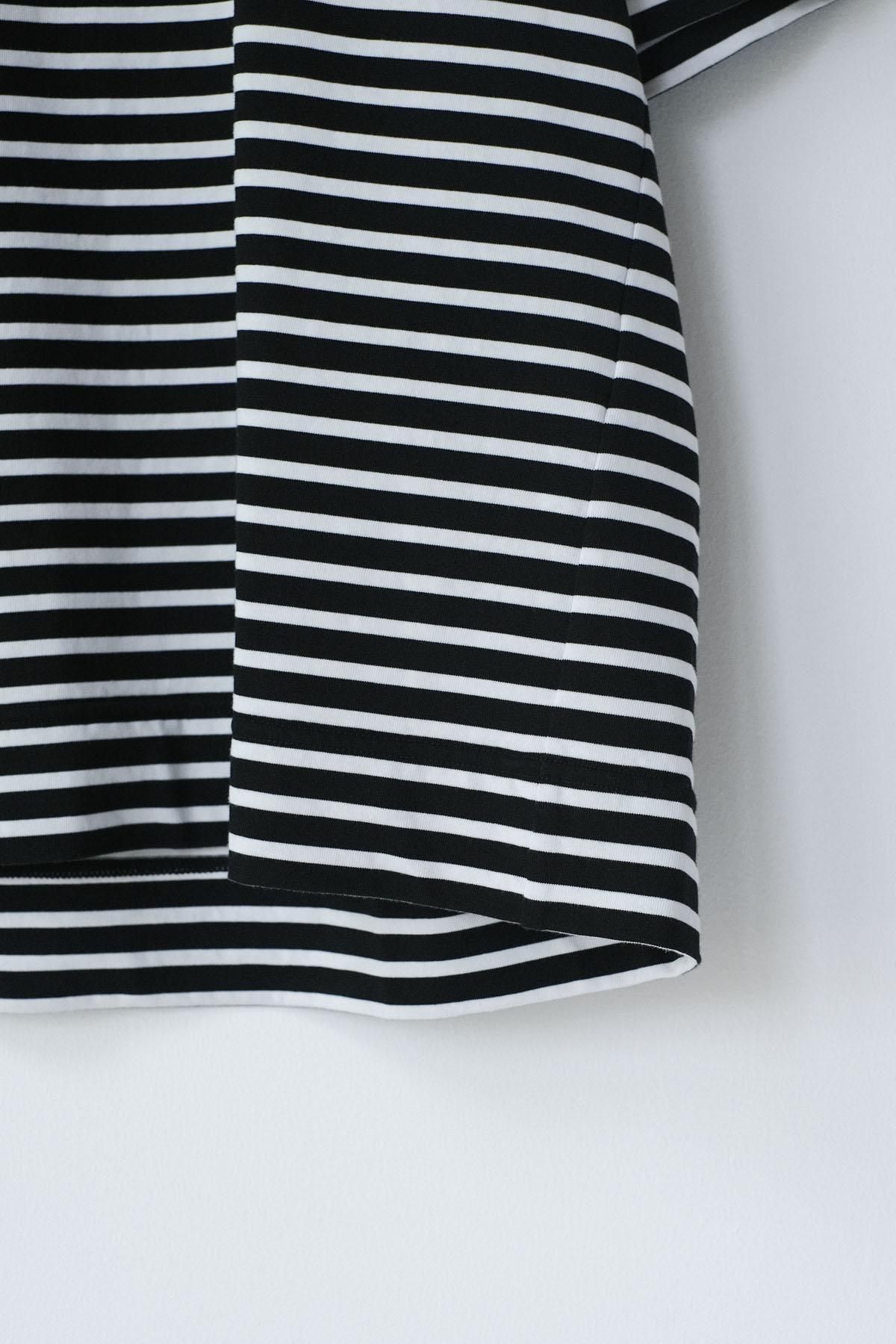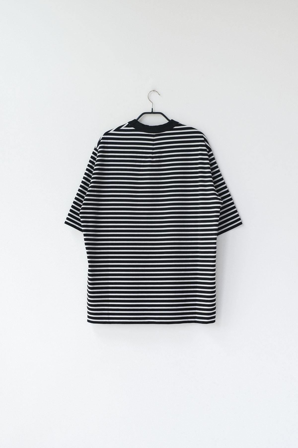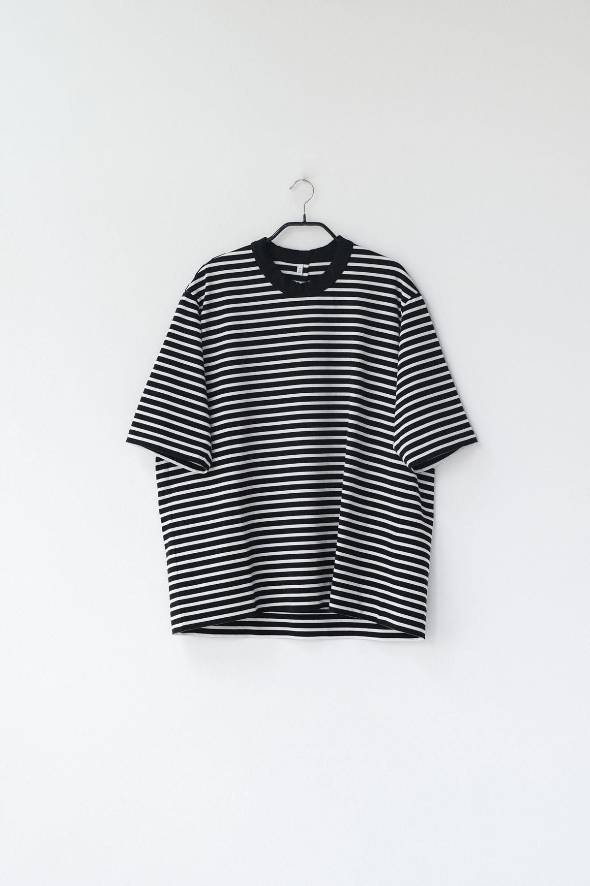 【商品名】微強撚綿天竺 ボーダークルーネックT/BK base × WH bd[size M]