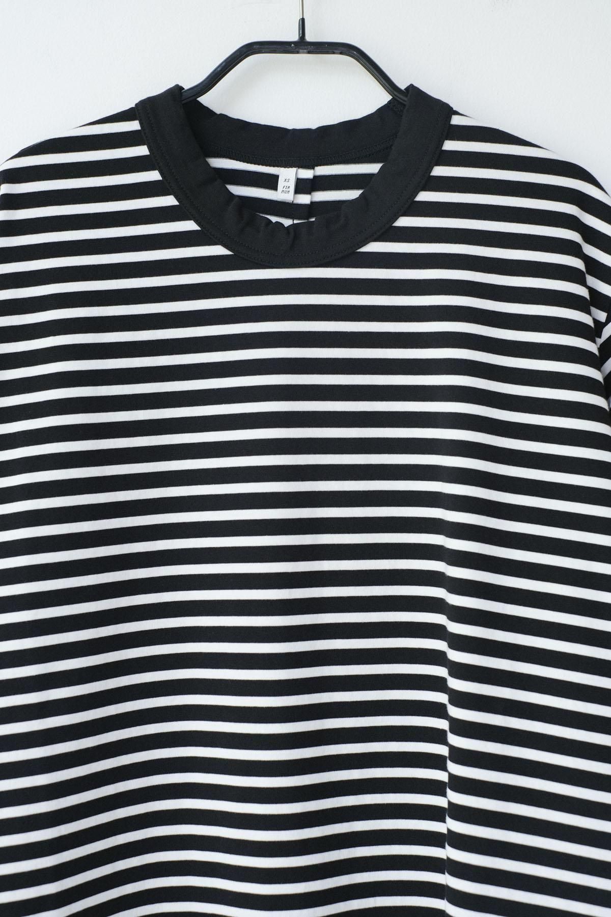 【商品名】微強撚綿天竺 ボーダークルーネックT/BK base × WH bd[size XS]