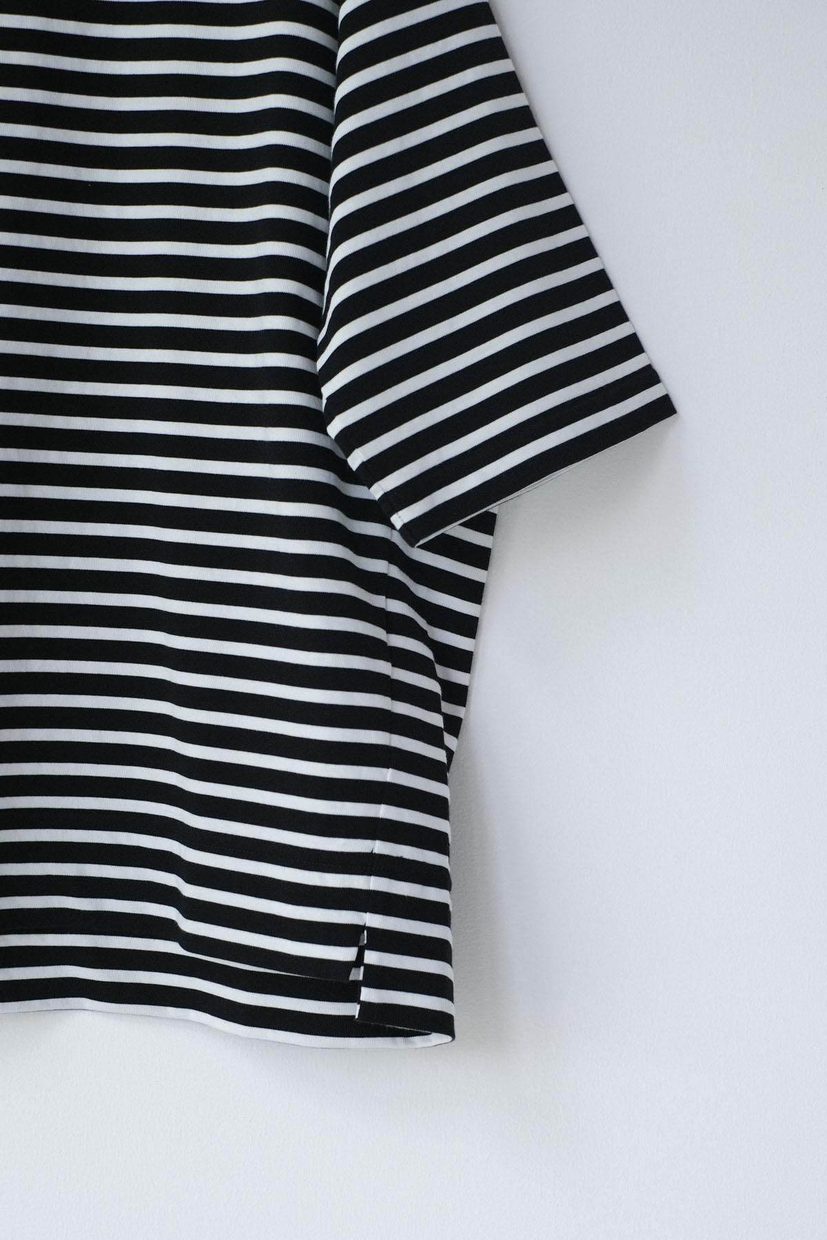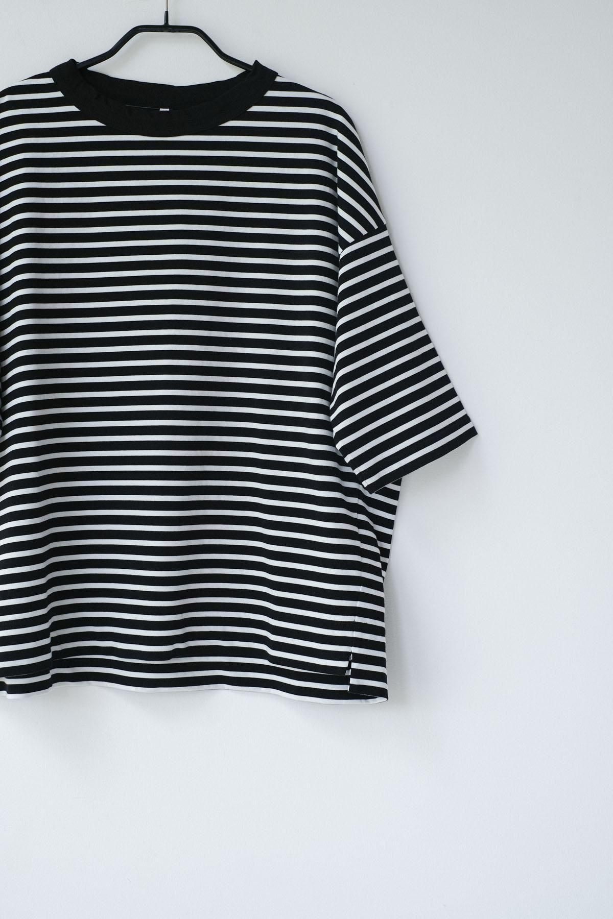 【商品名】微強撚綿天竺 ボーダーオーバーサイズT/BK base × WH bd[size XS]