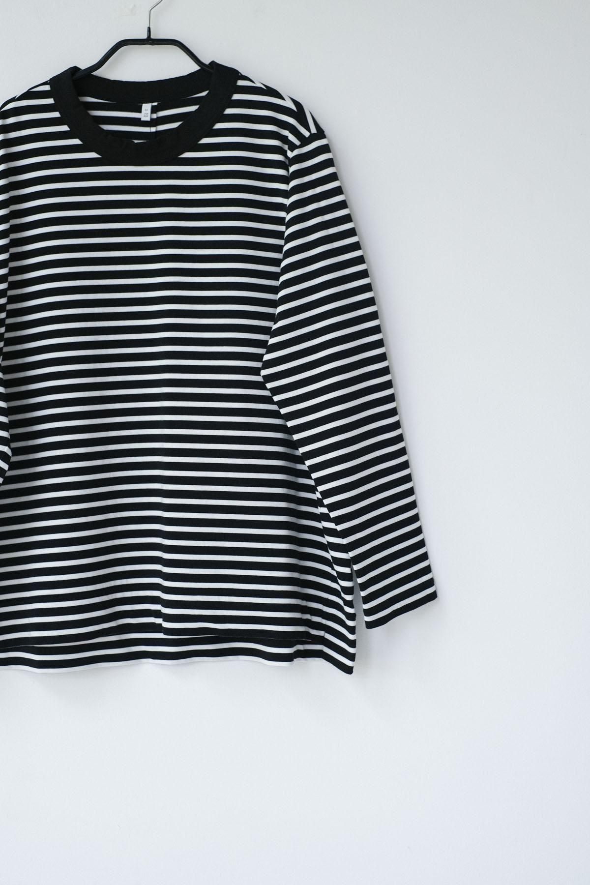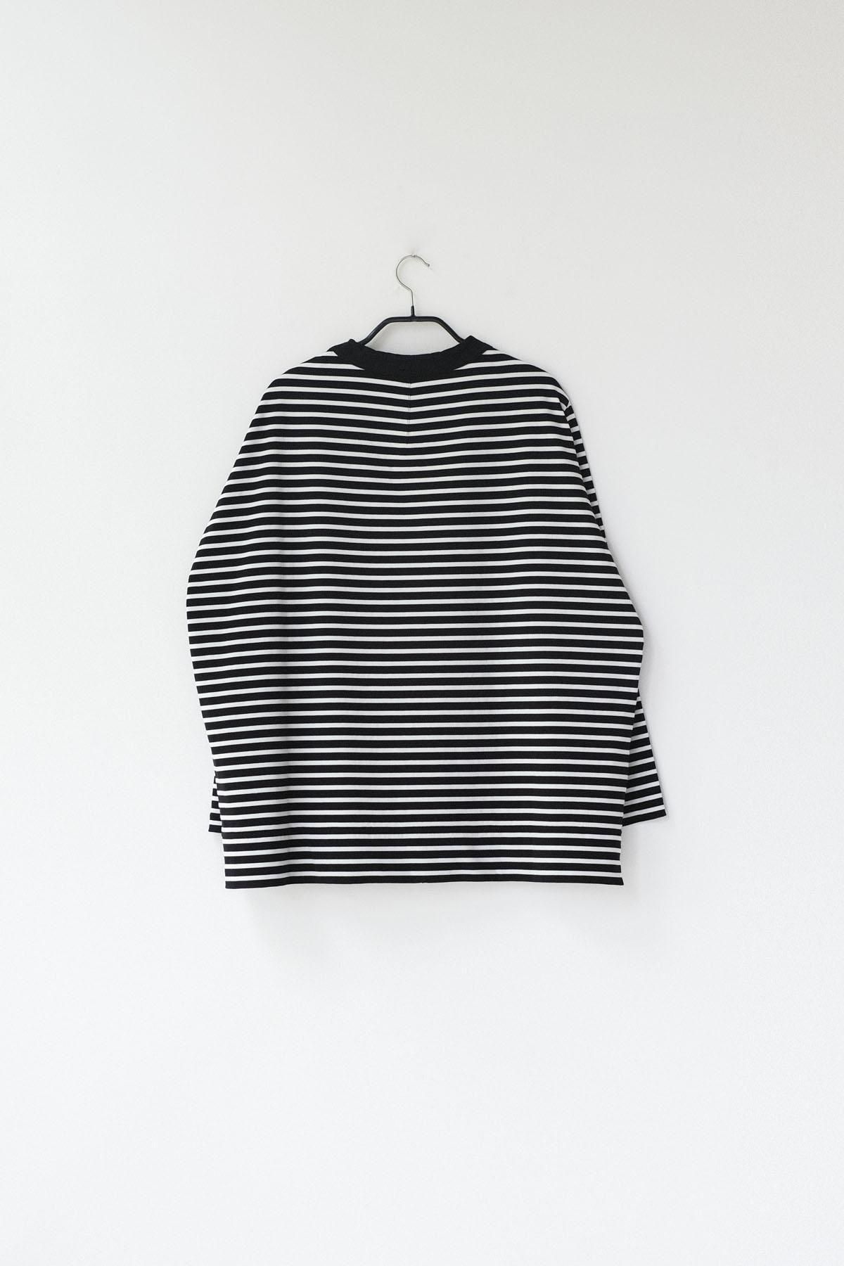 【商品名】微強撚綿天竺 ボーダークルーネックロンT/BK base × WH bd[size XS]