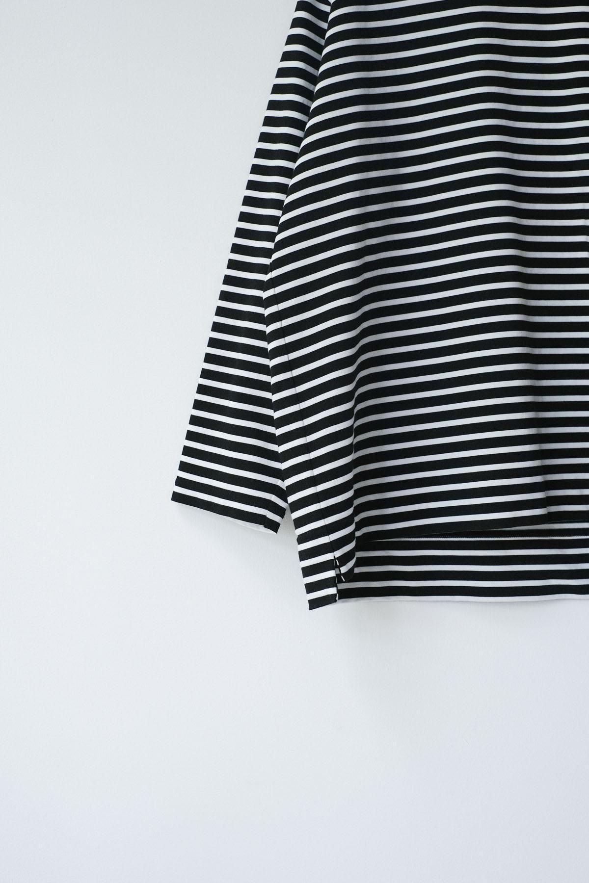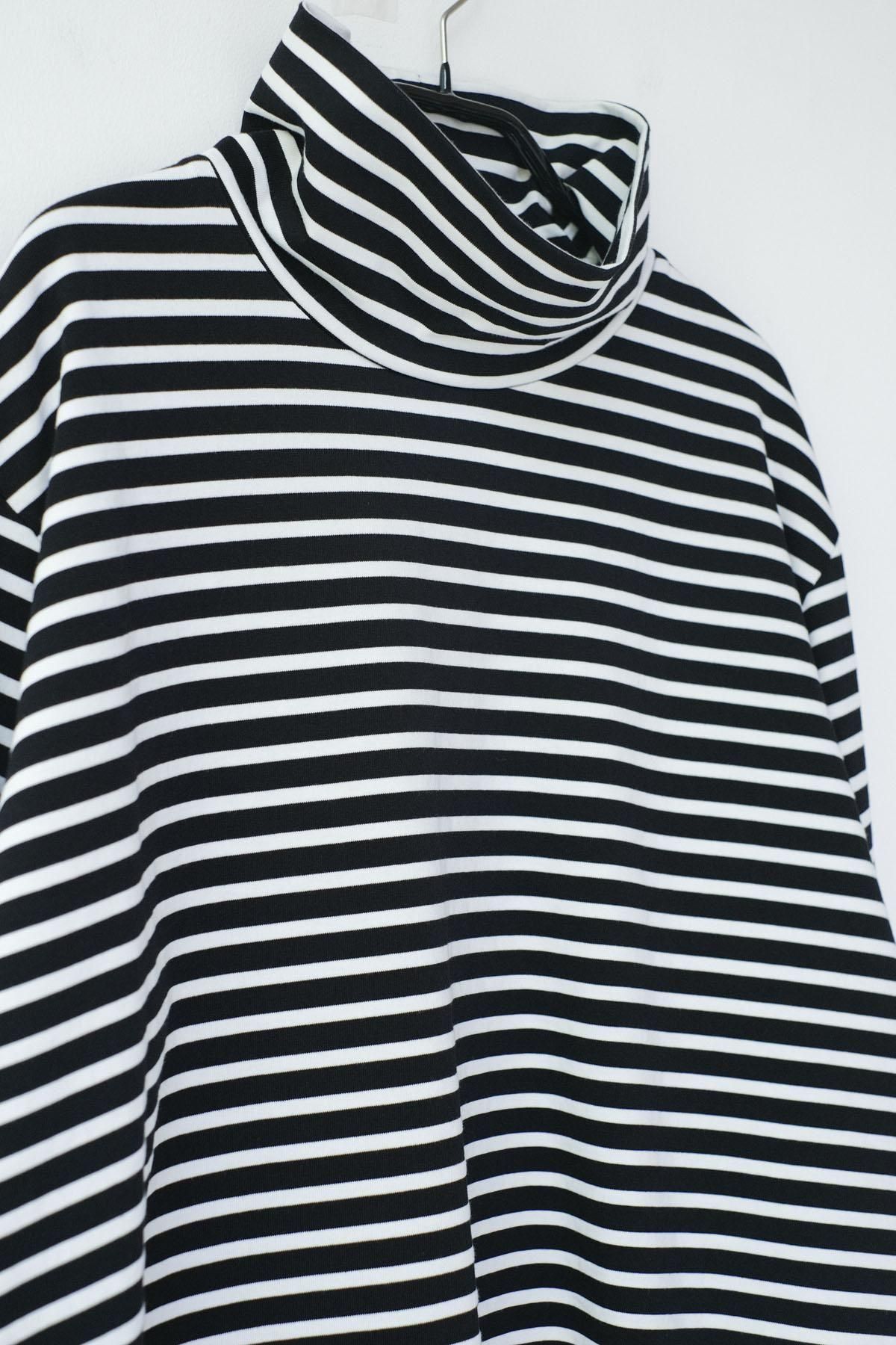 【商品名】微強撚綿天竺 タートルネックロンT/BK base × WH bd[size XS]