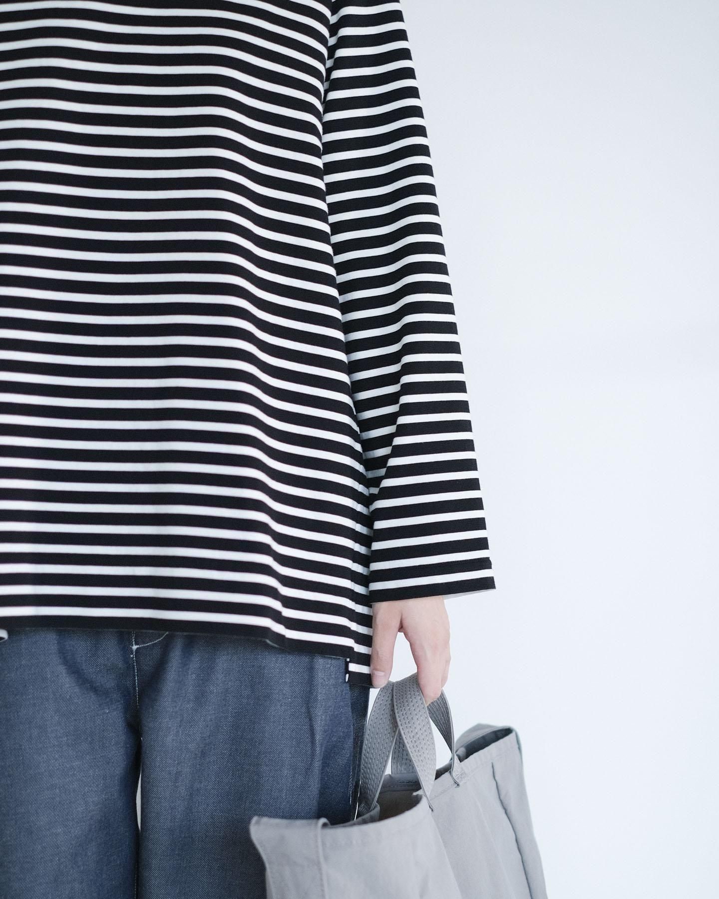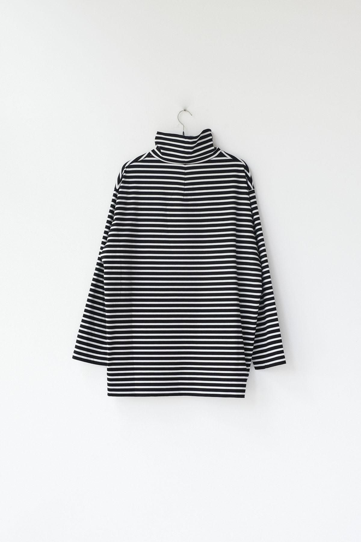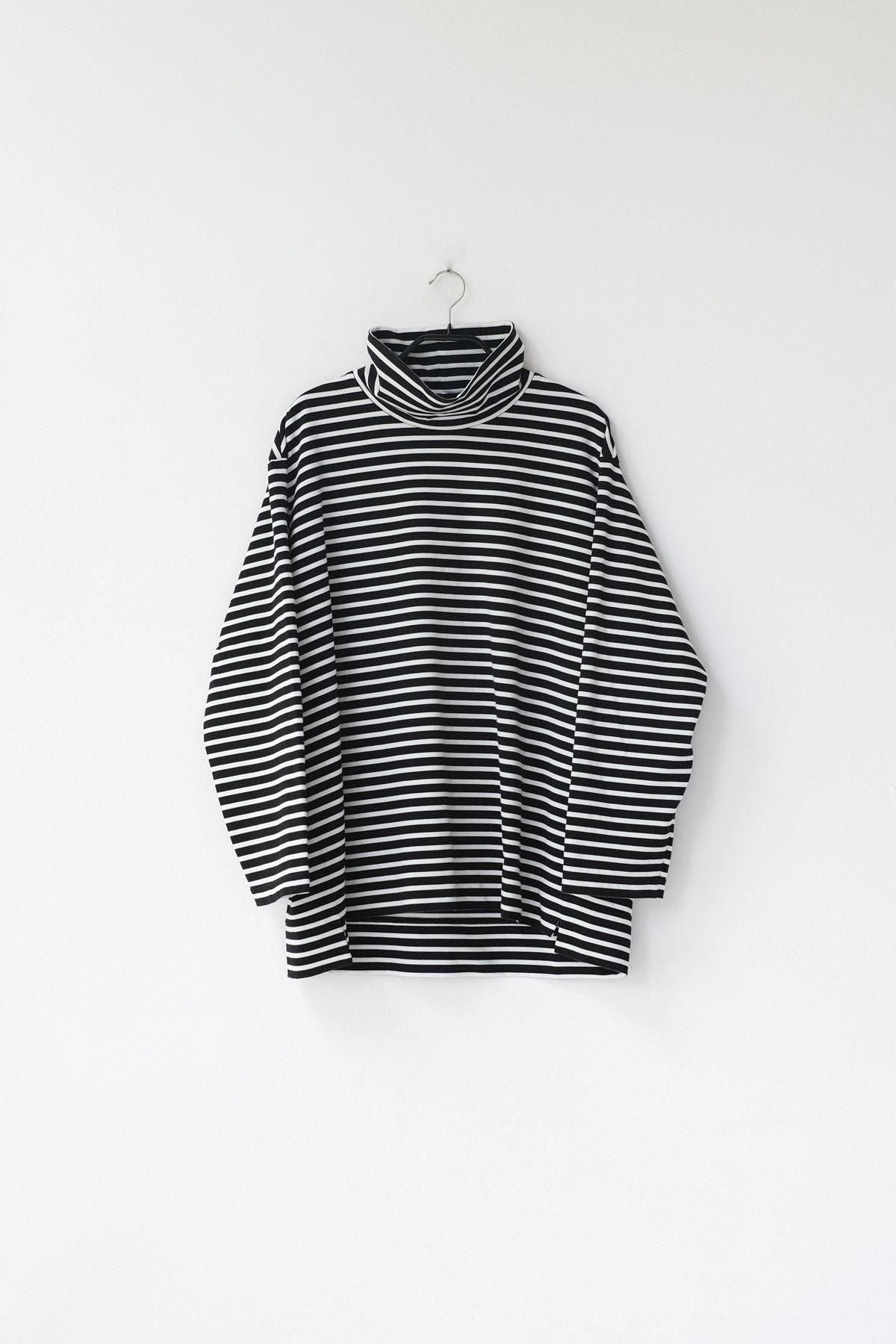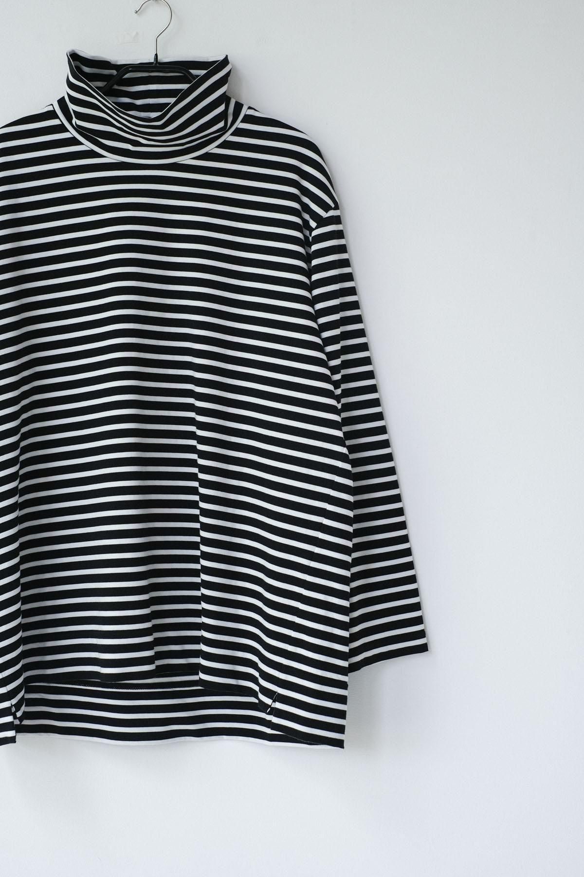 【商品名】微強撚綿天竺 タートルネックロンT/BK base × WH bd[size M]