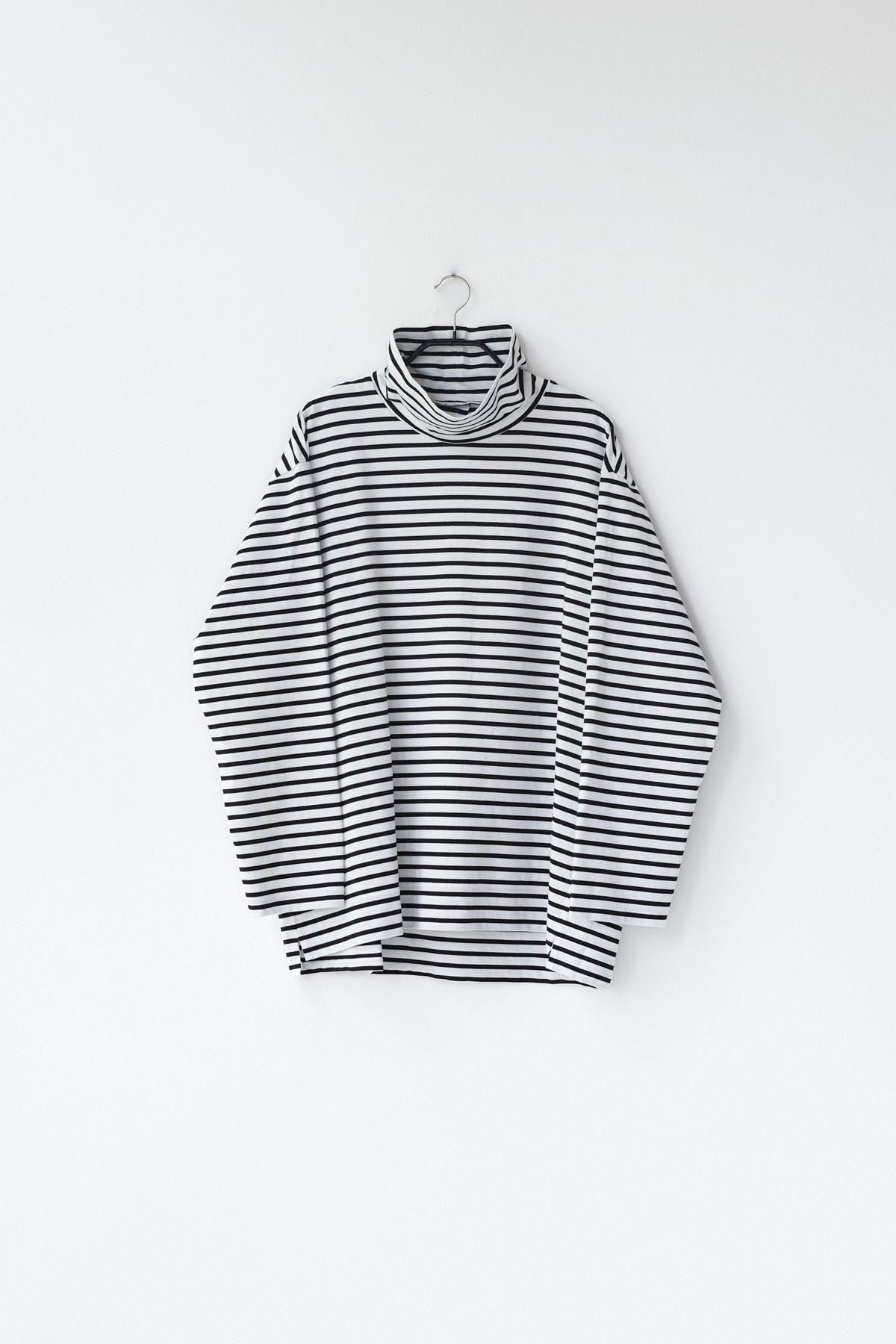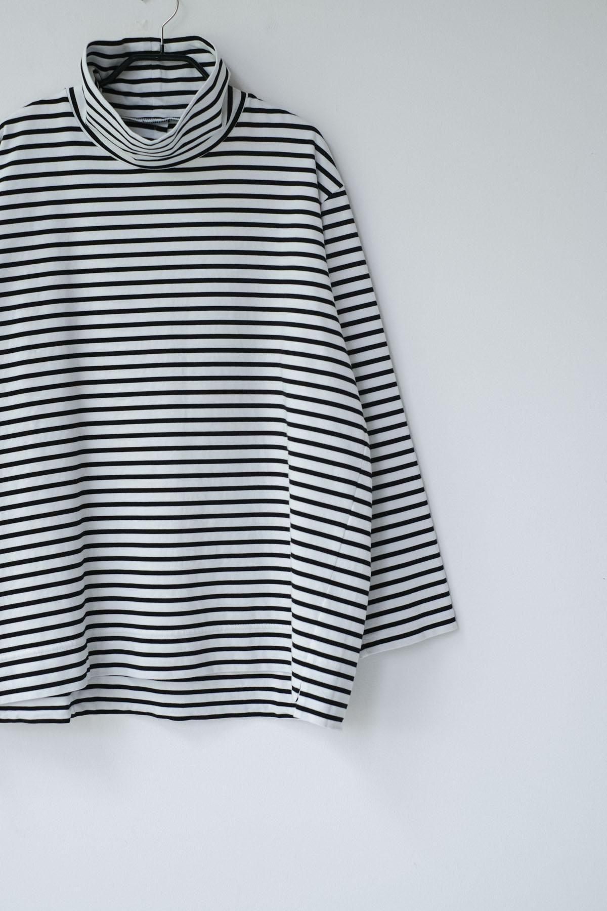 【商品名】微強撚綿天竺 タートルネックロンT/WH base × BK bd[size M]