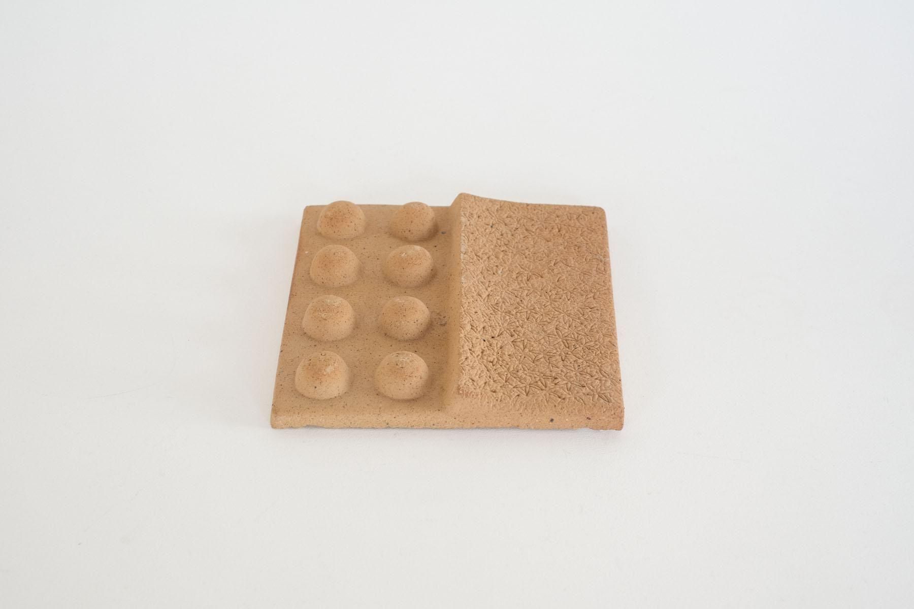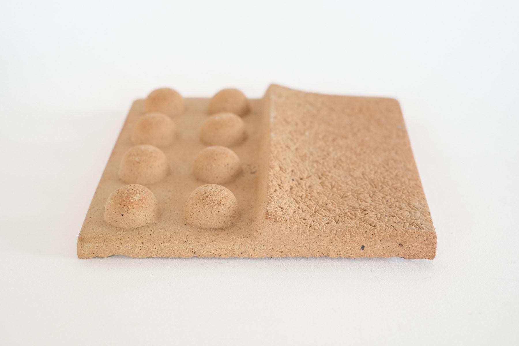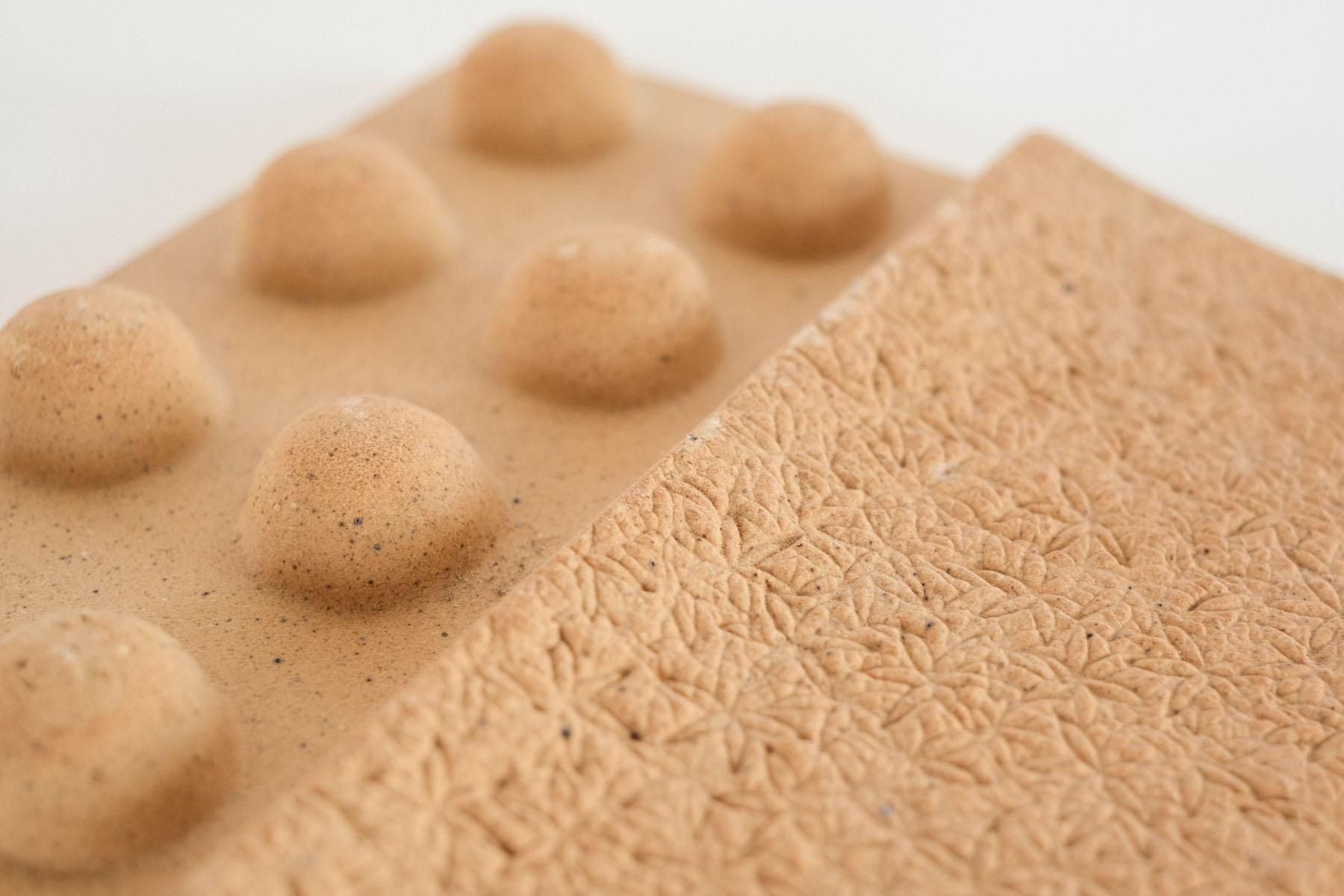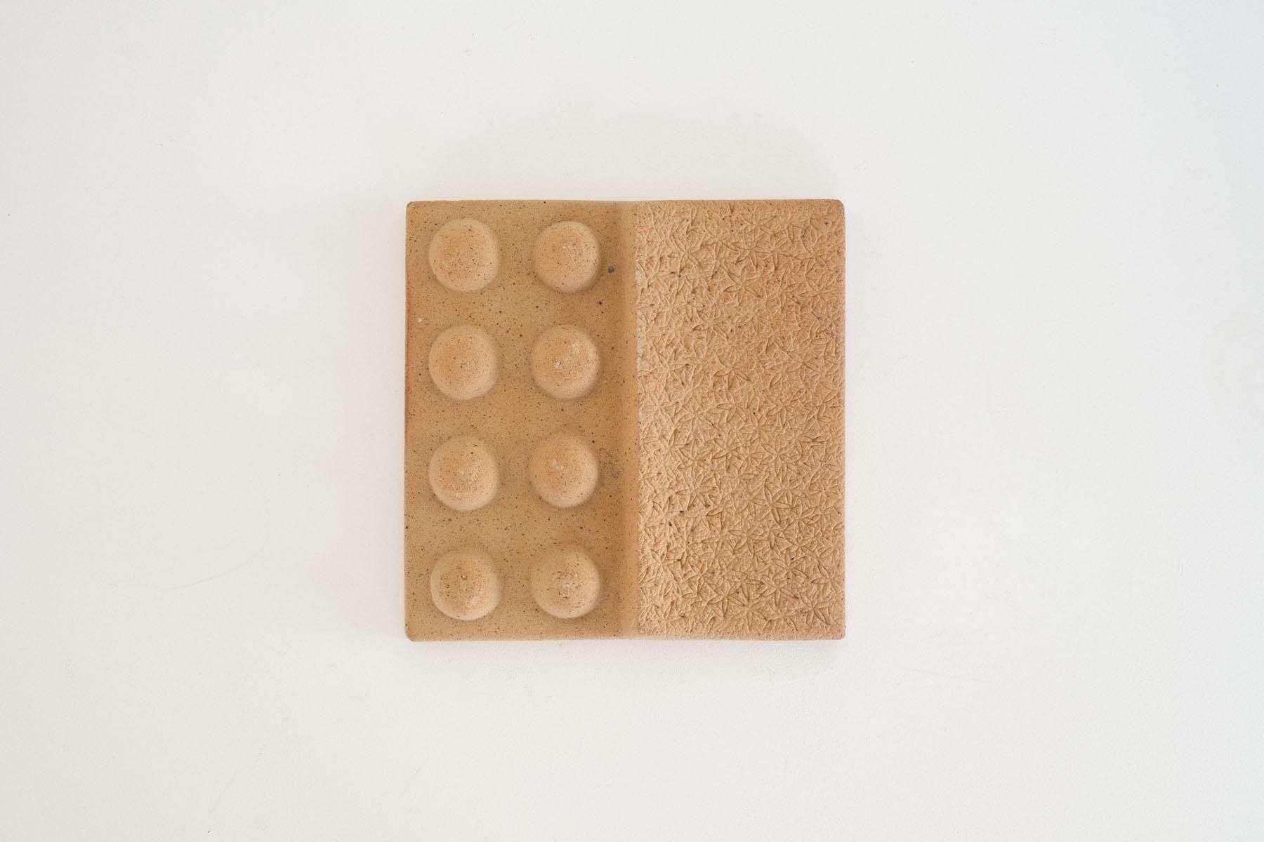 TAJIMI CUSTOM TILESは、多治見タイルの伝統や職人の技術を生かしつつ、新しい角度でタイルの魅力を発信しています。鋳込成形によって造形されたピースは、土自体のもつ美しい色味が最大限に引き出されています。自らの手で製作を行い、プロダクトを生み出すことが多い彼ならではの、素材に対する知識と実験的な試みが表れた作品です。オブジェとしてはもちろん、デスクや玄関に置いて小物を置くトレーとしてもお使いいただけます。